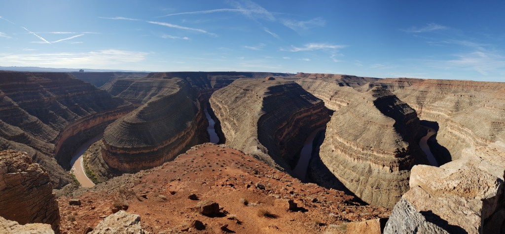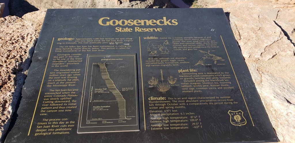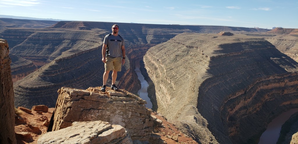 Our next stop was Goosenecks State Reserve, Utah, where the San Juan River has carved a breathtakingly deep canyon into the earth, dropping nearly 1,000 feet below the viewpoint. Standing at the edge, we marveled at the winding river far below, which originates in Colorado and eventually joins Lake Powell. The sweeping curves of the river created a stunning view, showcasing the power of nature over time. In that moment, it was impossible not to feel small against the backdrop of such a vast, ancient landscape.
