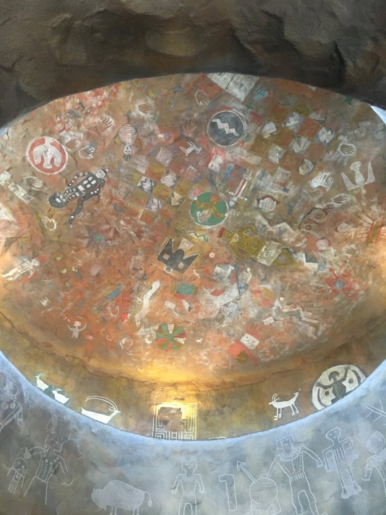 Next, we arrived at the South Rim of the Grand Canyon, Arizona. It was my first time visiting this world wonder, and I couldn’t have asked for better company. Bill, who somehow managed to tolerate me after being confined together in a vehicle for 24 hours, made the experience even more memorable. Our first stop along the South Rim was the Desert View Watchtower. Perched on the canyon’s edge, this impressive structure reflects the architecture of the ancestral Puebloans from the Four Corners region. Inside, the walls are adorned with murals by Hopi artist Fred Kabotie, adding cultural depth to the stunning scenery.