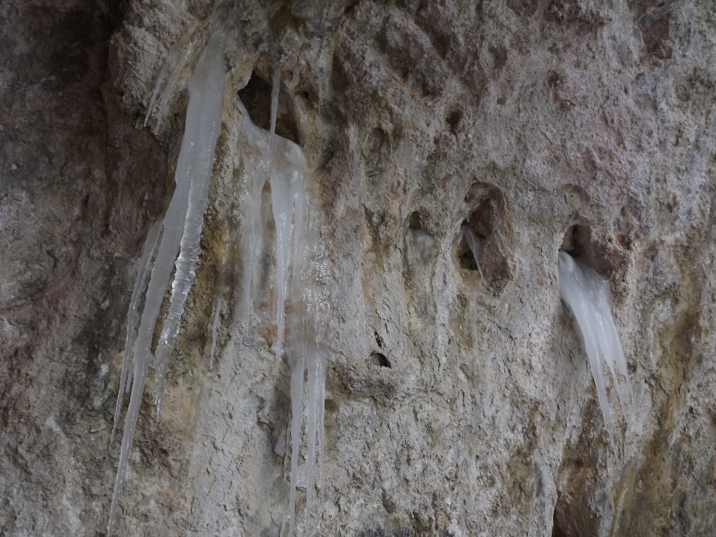 Every icicle formation was different. Some formed long elegant spears, while others fanned out like frozen fountains. One area looked like a natural ice organ, with blue-toned pipes rising from the ground. Another had icicles dripping directly out of the limestone walls, frozen in mid-drip like time itself had stopped.
