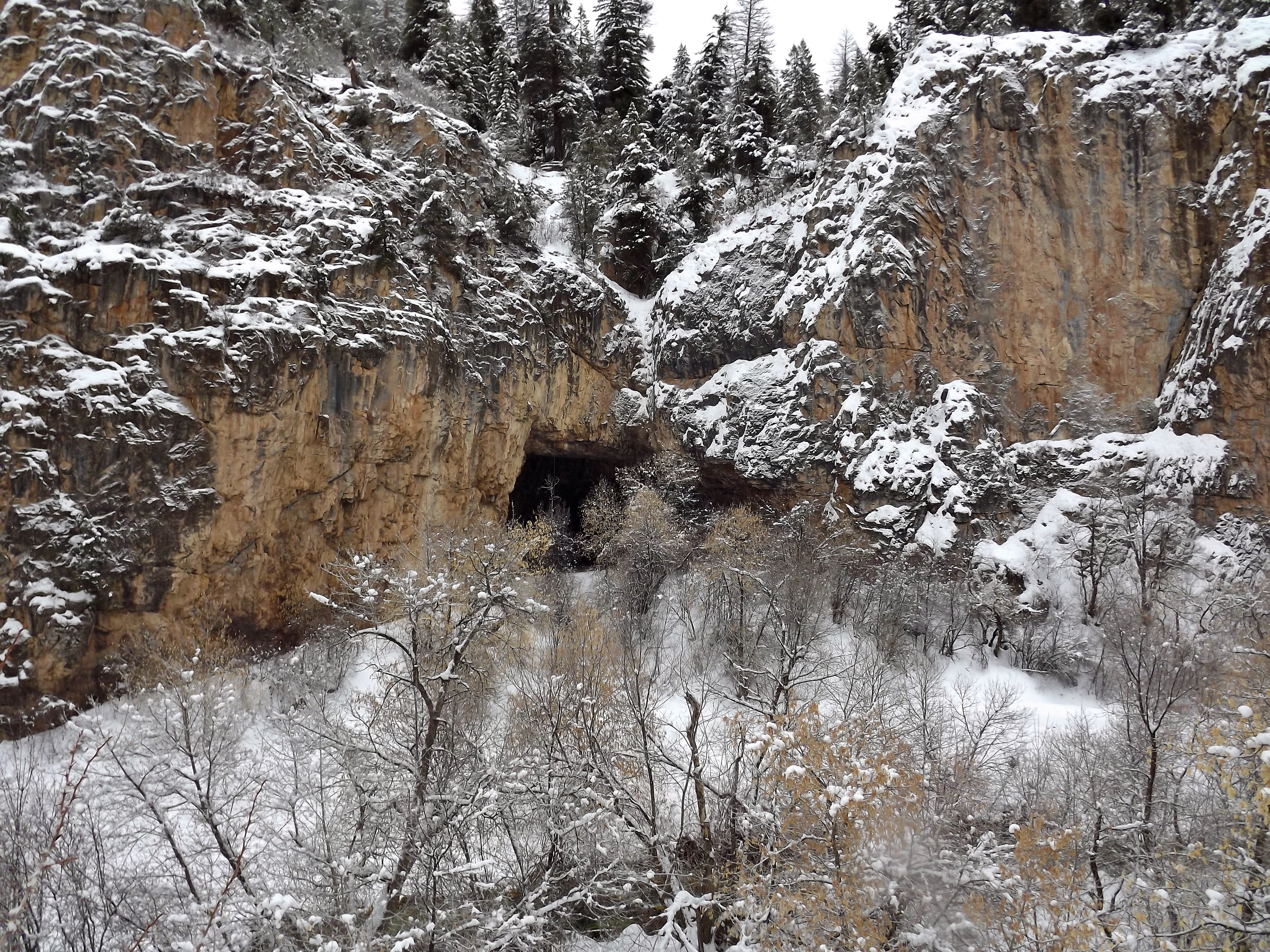 The park has a sign marking the start of the trail. The southernmost trailhead for Koper’s Trail is located just before the road crosses Rifle Creek for the first time. From there, Koper’s Trail leads directly to the ice caves. We followed Koper’s Trail to the ice caves, and the views along the way were just as stunning as the destination. Canyon walls rose above us like stone cathedrals, with frozen waterfalls clinging to their faces.