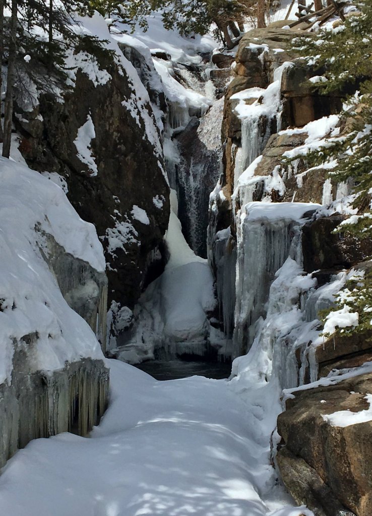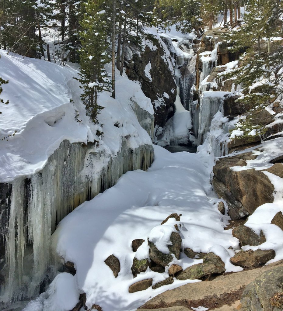 Tucked away in Rocky Mountain National Park, Chasm Falls is a breathtaking cascade that slices through a narrow slot canyon, tumbling down the valley toward Horseshoe Park. While this popular spot is often buzzing with visitors in the warmer months, Greg and I had the rare privilege of experiencing it in absolute solitude—a moment of pure mountain magic.