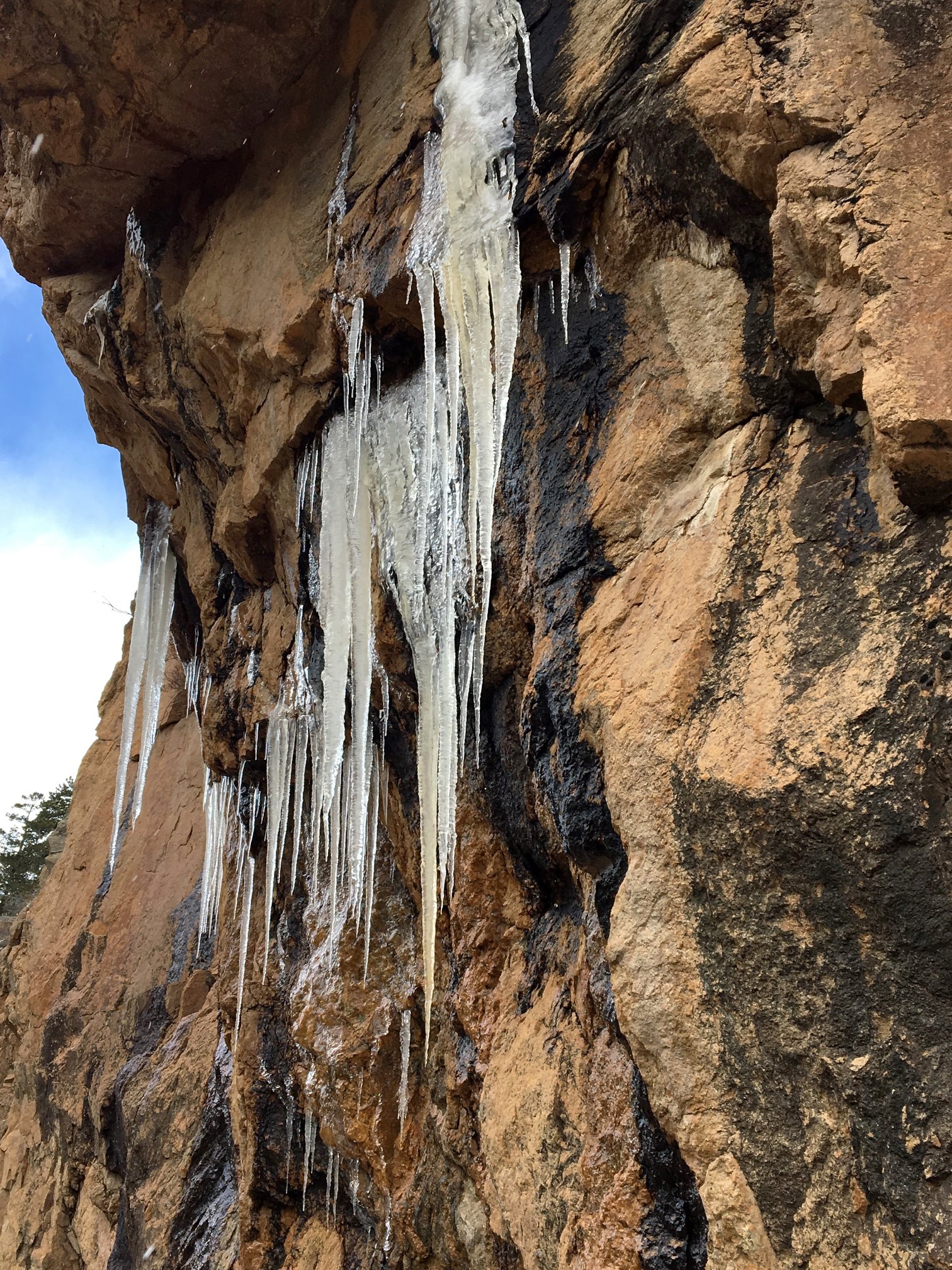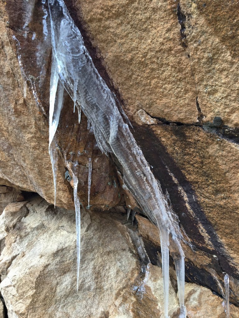 On the way back, I couldn’t resist having a little fun with one of the hanging icicles along the trail.
