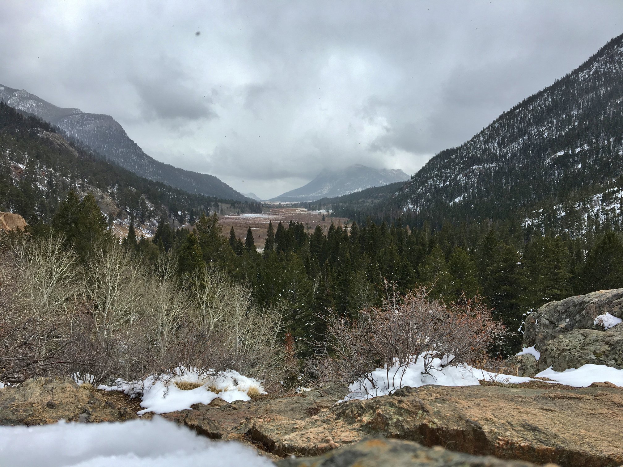 Hiking up Old Fall River Road in early spring felt like stepping into a world between seasons. The familiar dirt road, bustling with cars in summer, had transformed into a serene trail, winding its way through forests and open meadows dusted in white.