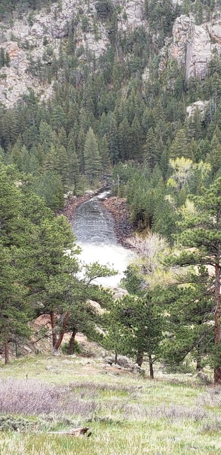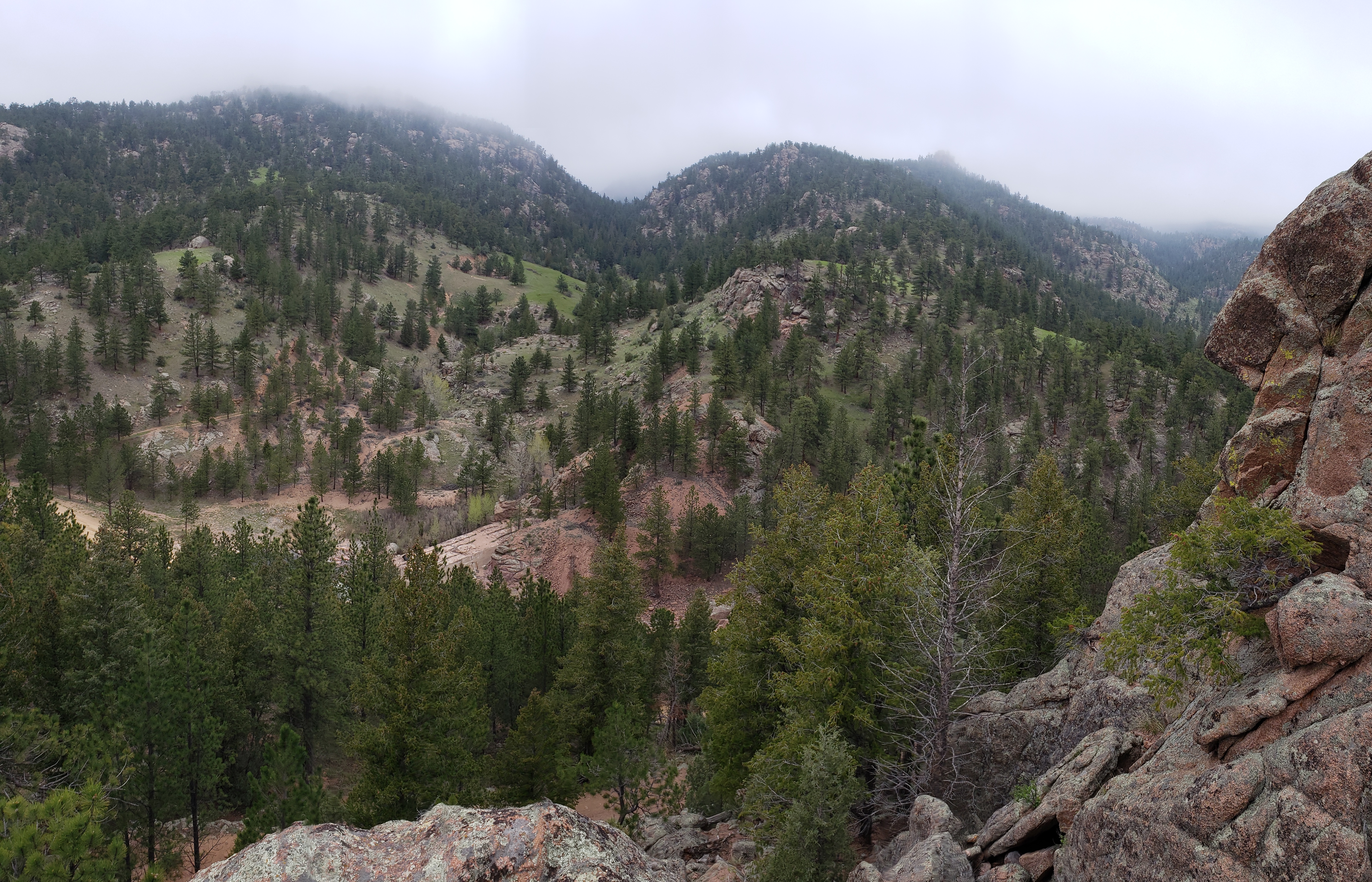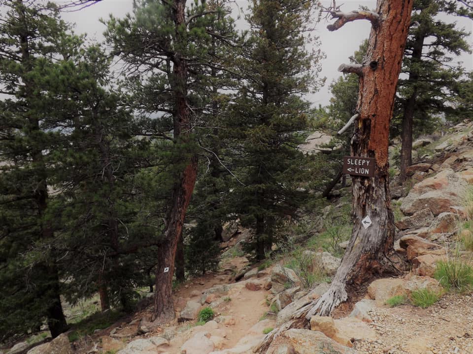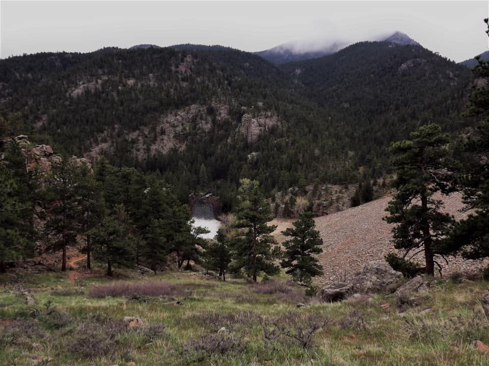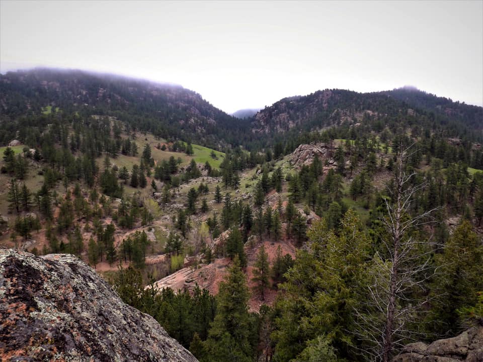 From the parking lot, we started along the wide access road that runs beside North St. Vrain Creek for about a mile until we reached the Sleepy Lion Trail junction. From there, the trail climbed steadily up the canyon, gaining about 700 feet in elevation over the second mile. The climb was invigorating, and as we reached the top, we were greeted with breathtaking views as Longs Peak briefly emerged from the cloud cover, offering us a fleeting but spectacular glimpse.