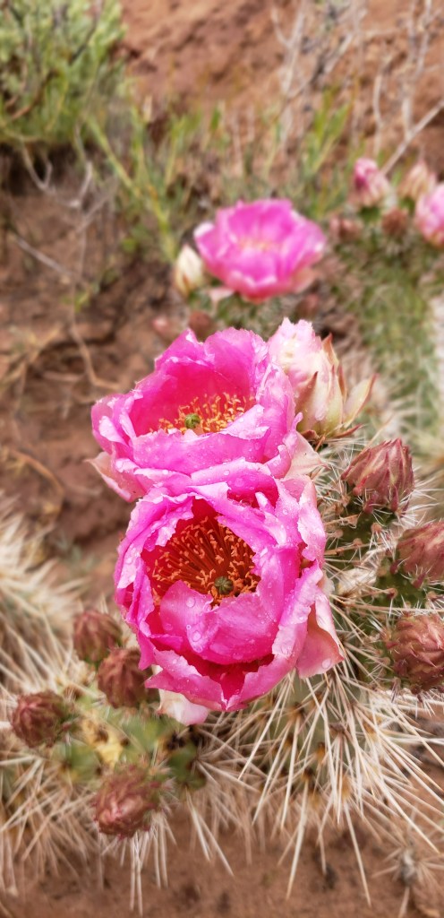 Despite the unexpected mess, the landscape was bursting with color. Vibrant wildflowers painted the valley in hues of purple, pink, yellow, and white, a striking contrast against the red rock formations. It felt like the desert was alive, celebrating the rare rain.