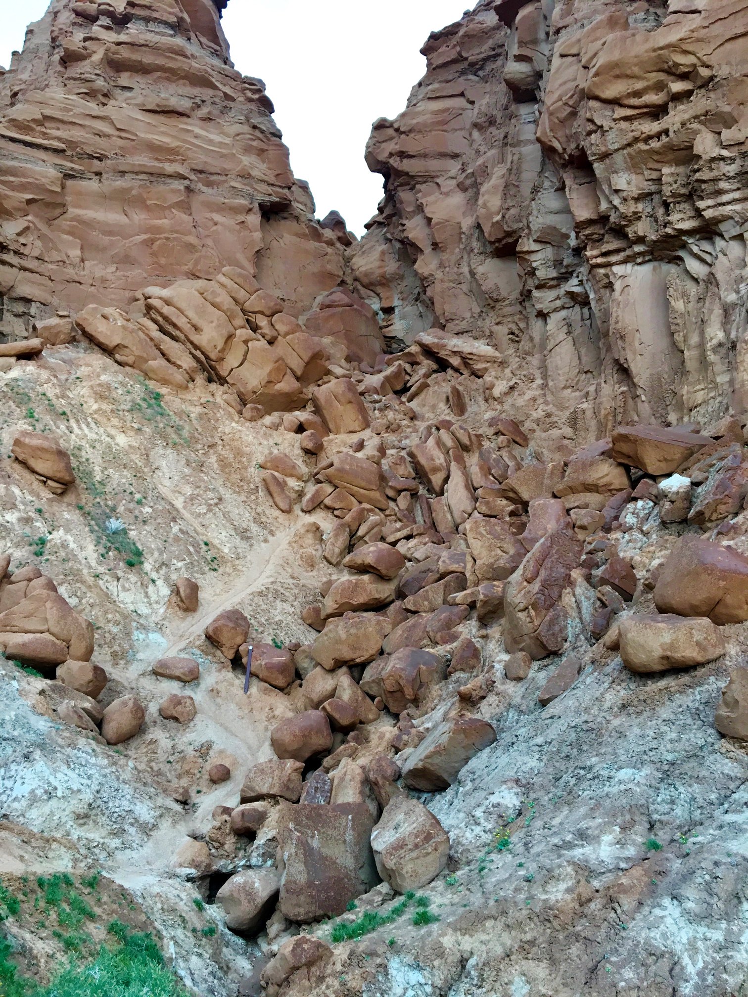 The trail outside the lair became muddy and slick, turning our descent into a slippery challenge. More than once, I had to slide down on my butt, my pants collecting a fresh layer of desert mud. Bill, of course, found this hilarious.