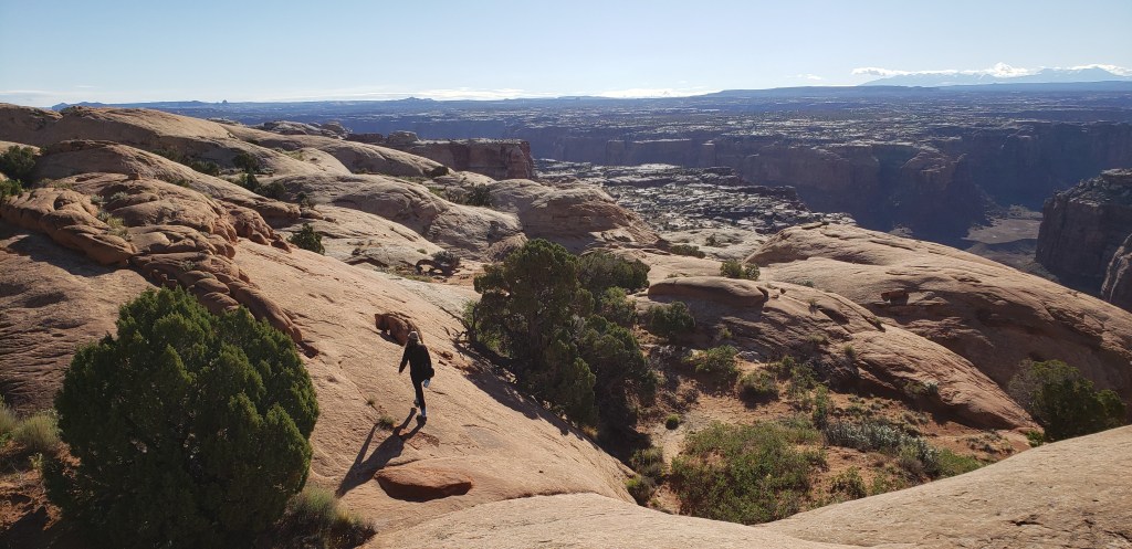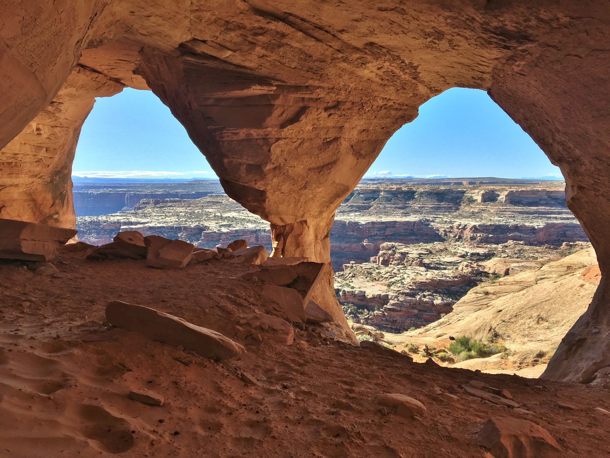 Stepping through the arch, we were greeted with breathtaking views of Canyonlands National Park, the La Sal Mountains, and the deep canyon below. Each of its five openings framed the desert in a different way—like nature’s own picture windows. Looking down into Two Mile Canyon from inside the arch was a reminder of just how vast and untouched this landscape truly is.