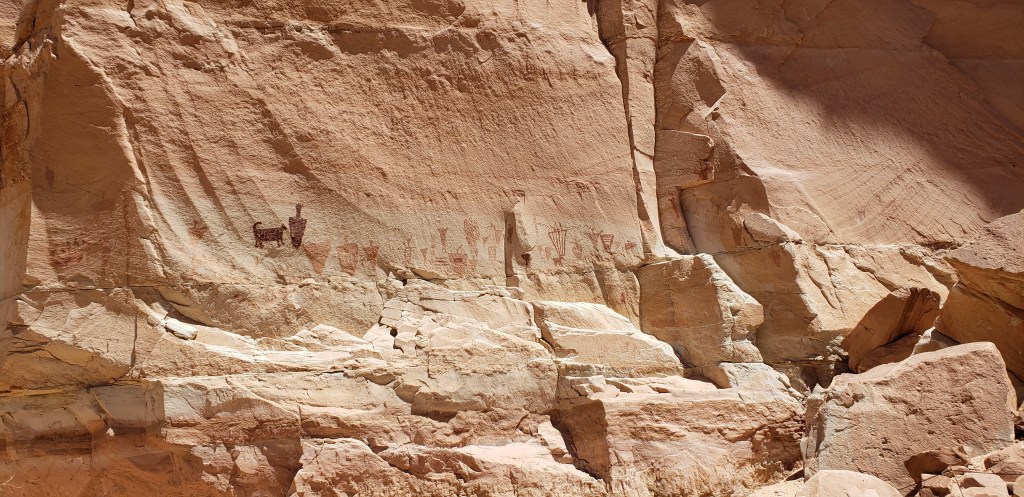 As we made our way through the canyon, we encountered four ancient pictograph panels, each telling a silent story from another time: