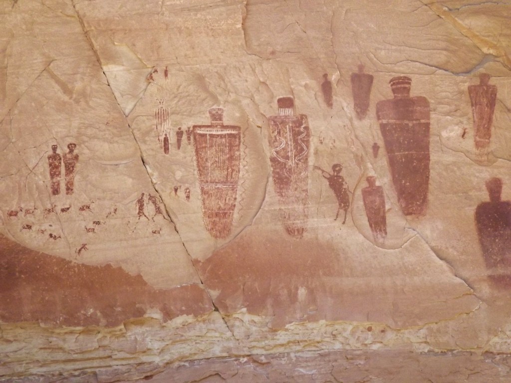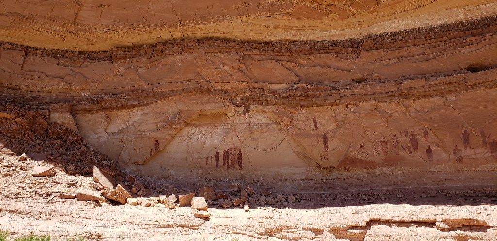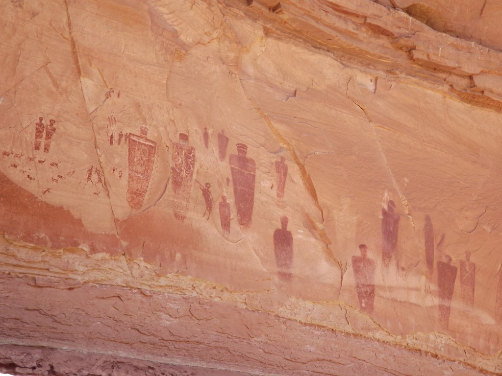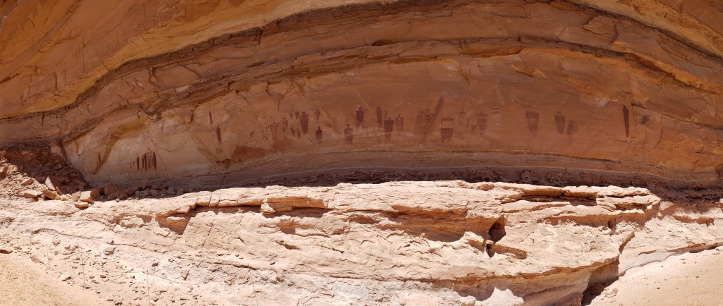 - The Great Gallery – The most famous panel, life-sized human-like figures standing in a long, intricate mural. Some of these figures are over 8 feet tall and 200 feet wide, their reddish-brown paint still vibrant after thousands of years.