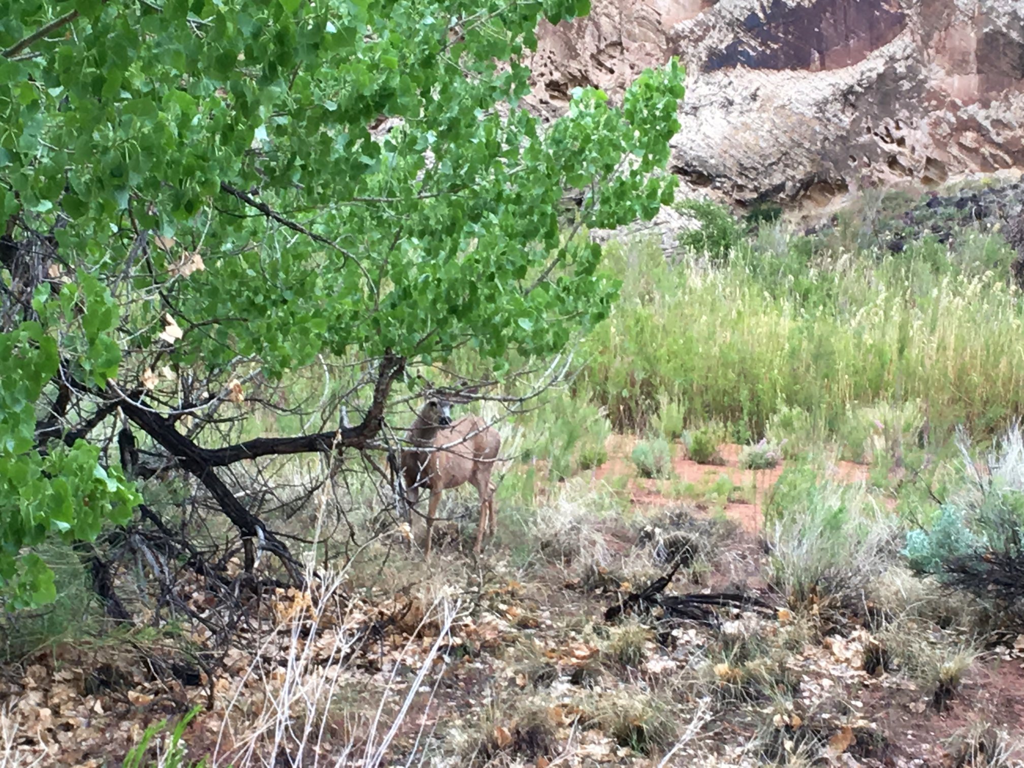 We didn’t get the chance to do much hiking, but the rain turned the park into something even more magical—tiny waterfalls cascaded down the sandstone cliffs, bringing the desert to life. We spotted a deer grazing peacefully, pausing for a moment to check us out before continuing his dinner.