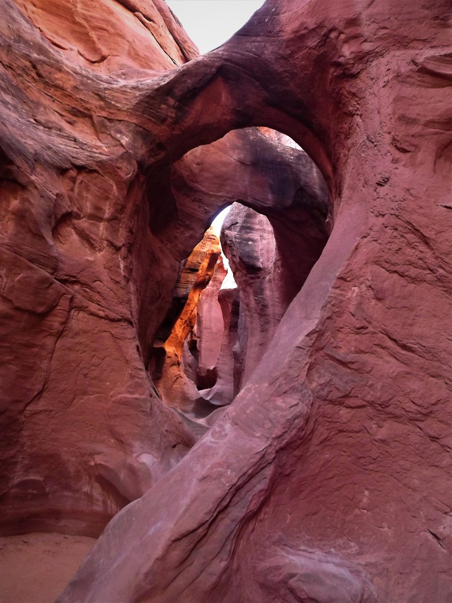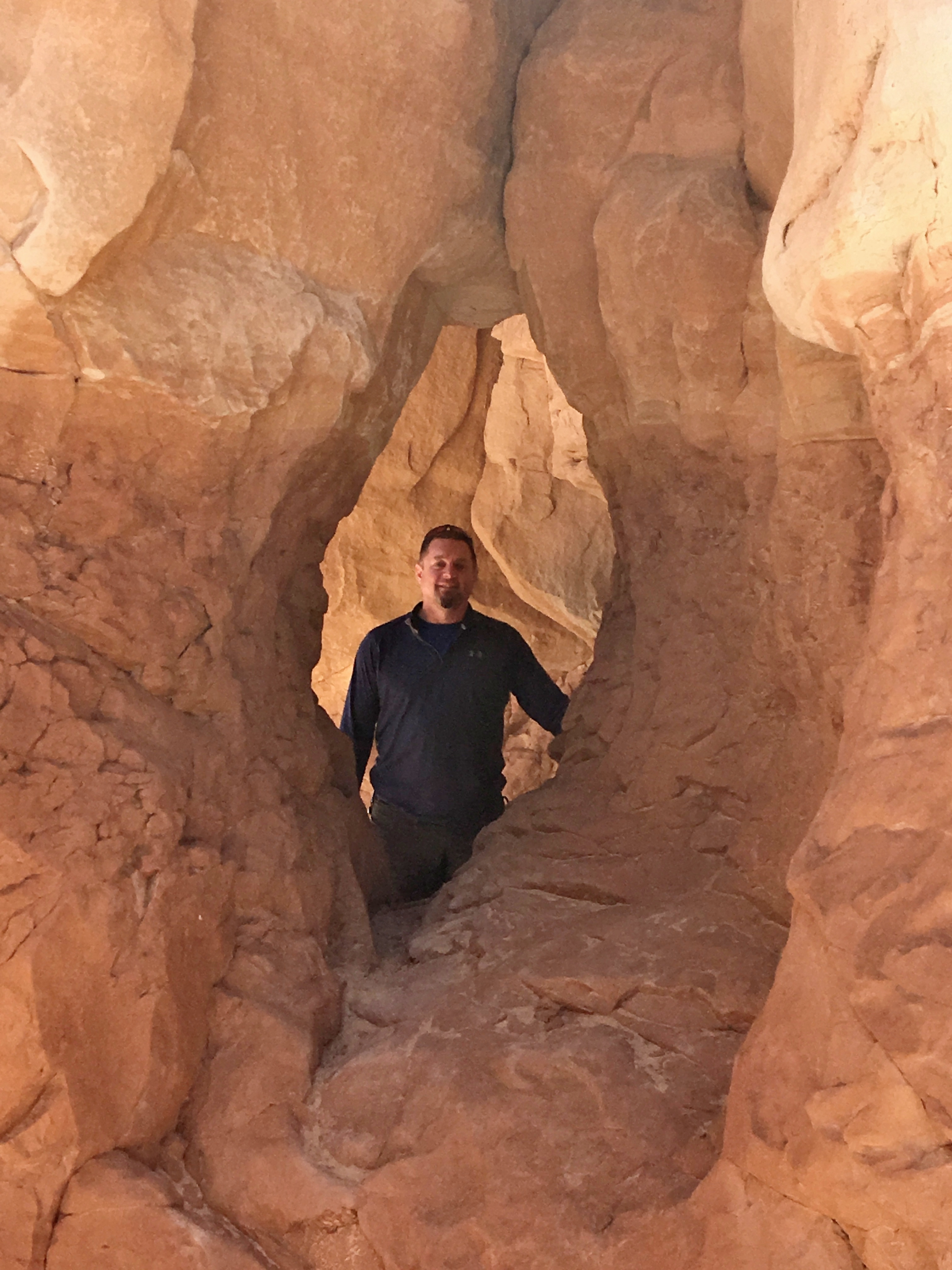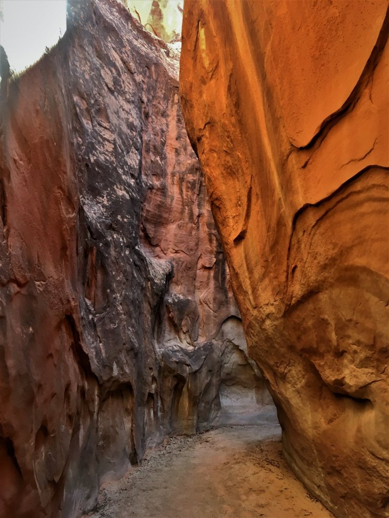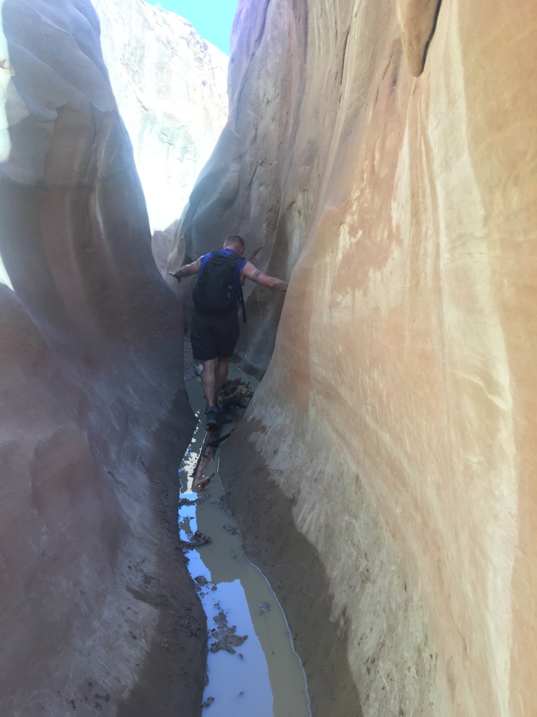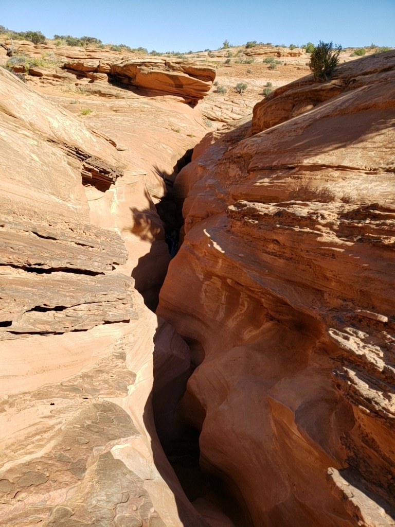 - Spooky Slot Canyon was exactly as its name suggested—dark, eerie, and impossibly narrow. At its tightest point, the passage shrunk to just 15 inches wide, forcing us to sidestep and squeeze our way through. It was 30 feet deep, and in some sections, the light barely reached the canyon floor. Definitely not for the claustrophobic! I found it really helpful to have a headlamp here—there were a couple of spots where it got unexpectedly dark, and having that extra light made navigating much easier.
