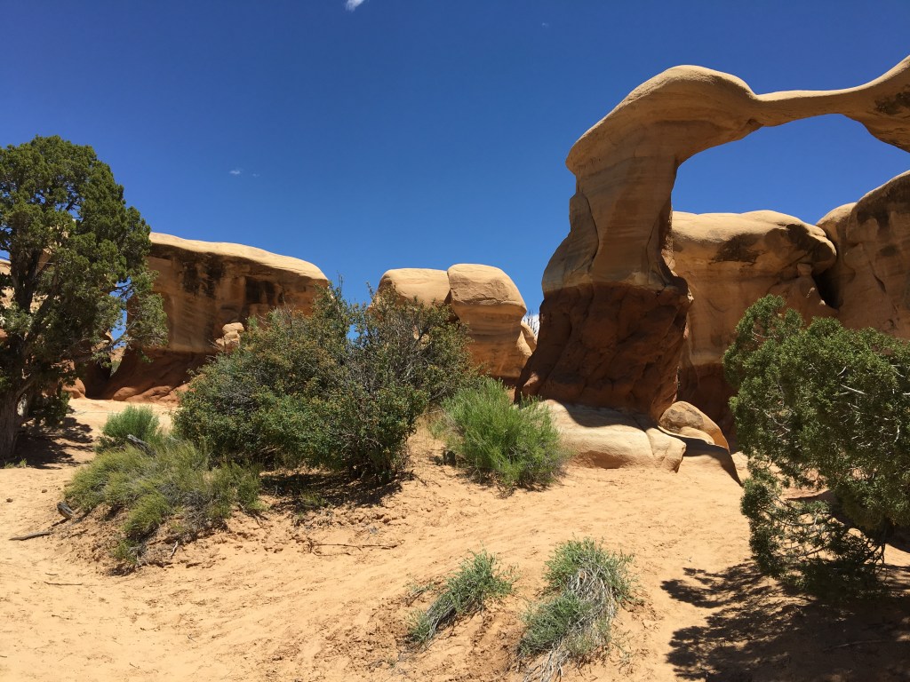 Bill and I’s first stop along Hole-in-the-Rock Road was Devil’s Garden, an otherworldly geologic wonderland of hoodoos, natural arches, and sculpted rock formations.