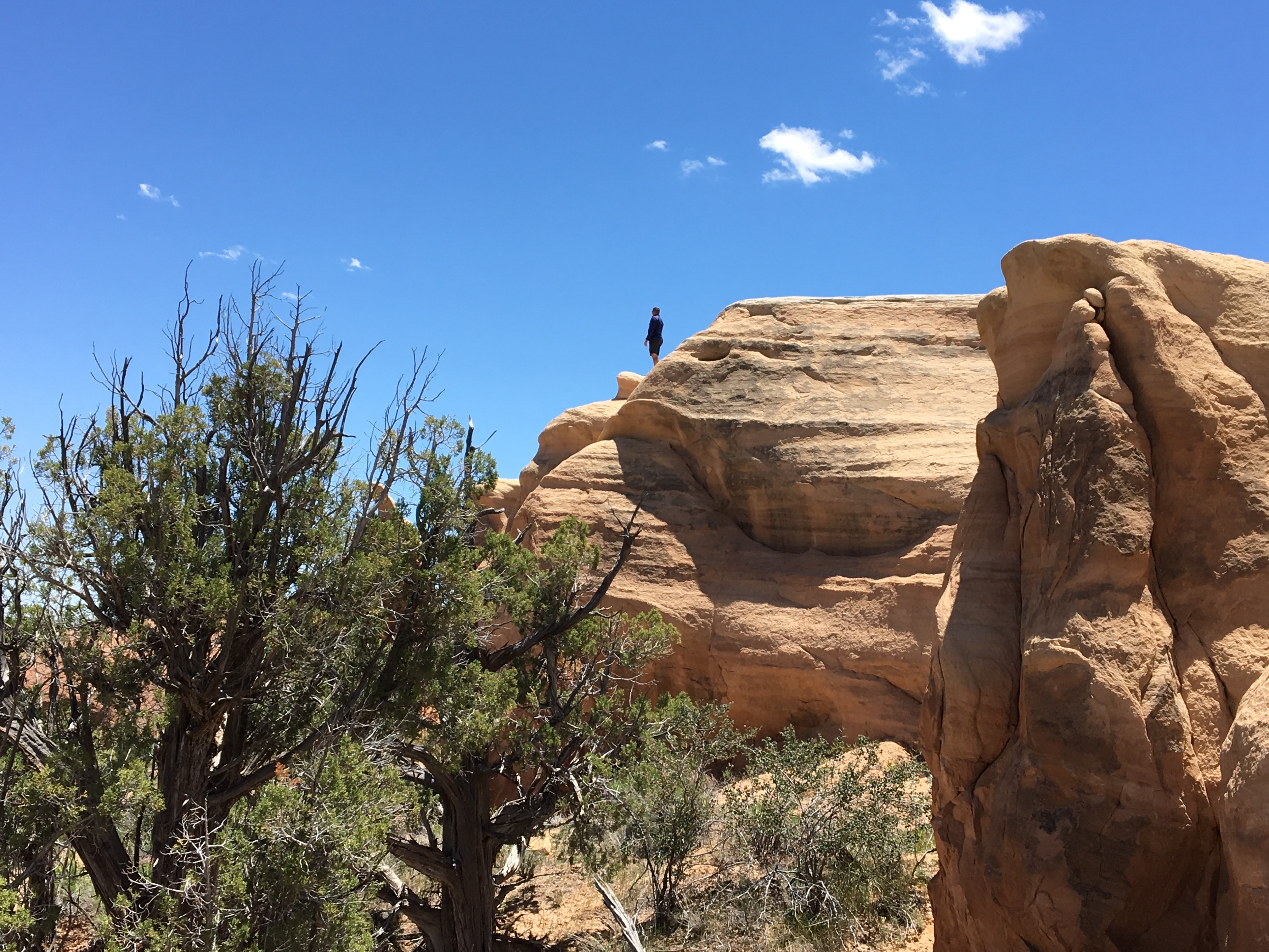 Bill and I explored several trails, weaving through the hoodoos and discovering hidden alcoves and wind-carved tunnels. Climbing up onto the rock formations gave us an incredible view of the surrounding desert. It was the perfect way to start our exploration of Hole-in-the-Rock Road.