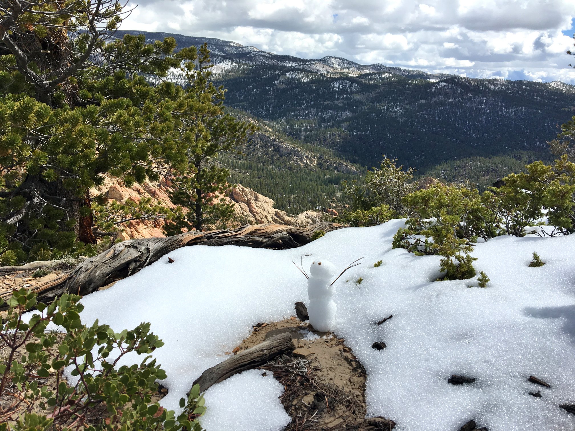It was Memorial Day Weekend in southern Utah, and yet, there it was—a fresh, lingering patch of white. While Bill was more interested in starting a snowball fight, I felt the need to build a tiny snowman as a tribute to this bizarre, high-elevation winter moment in the middle of the desert.