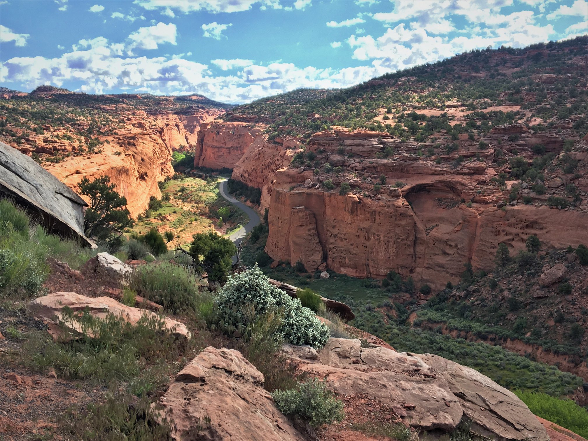The famous Hell’s Backbone Bridge was a thrilling sight—perched over a deep, rugged chasm, with drop-offs on both sides and jaw-dropping views of the Escalante canyons below. Standing on the bridge, I looked out over the miles of untouched wilderness, feeling as if we had stepped into another world.