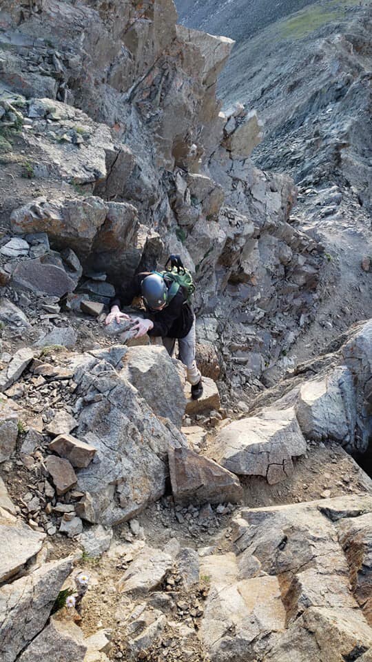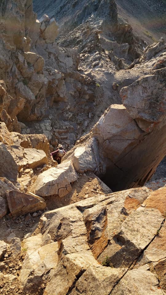 Kelso Ridge is not for the faint of heart. The trail involves navigating solid rock faces, loose scree, and some challenging class 3 moves. Before reaching the knife-edge, we came across an old mining shack perched precariously on the slope, a reminder of the area’s rich history. Each step brought us closer to Torreys Peak, with the jagged, winding ridge providing awe-inspiring views of the valleys and mountains below.