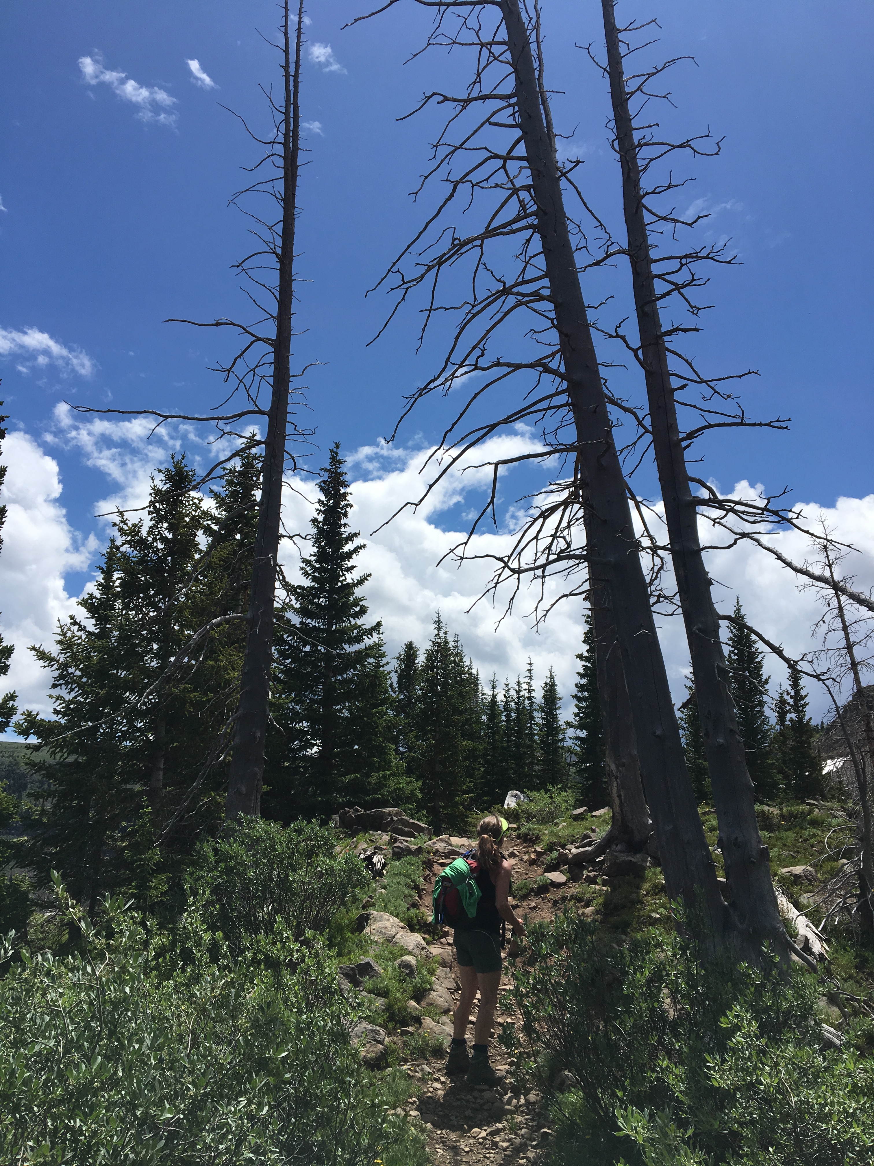 The trail began with a steep climb, boasting a 1,870-foot elevation gain in the first two miles. We ascended through lush forests that soon gave way to wide-open alpine tundra, dotted with wildflowers in full bloom. As we climbed above the treeline, we were rewarded with sweeping views of the Chinese Wall and the rugged, untouched wilderness stretching beyond.
