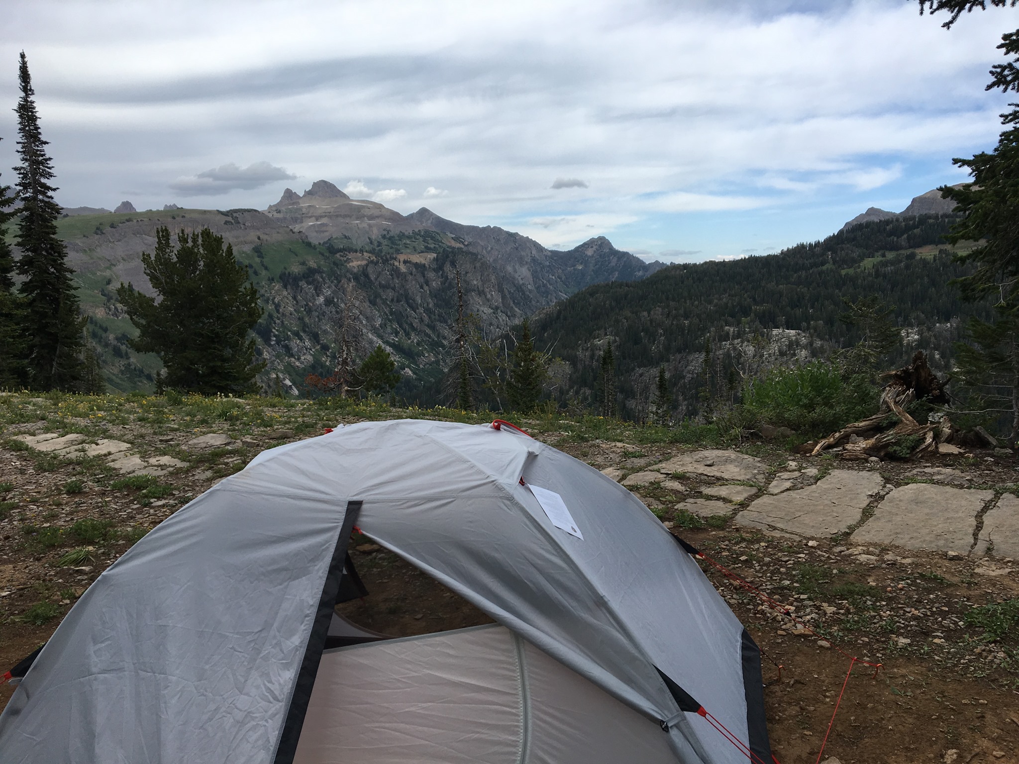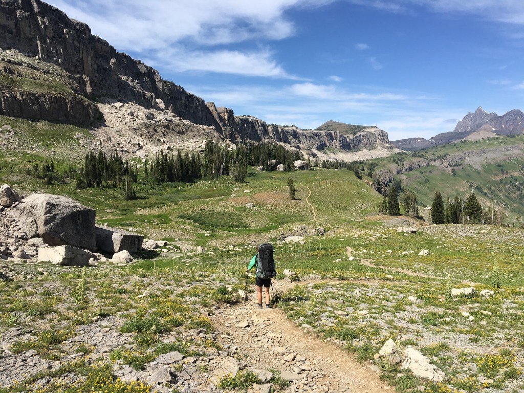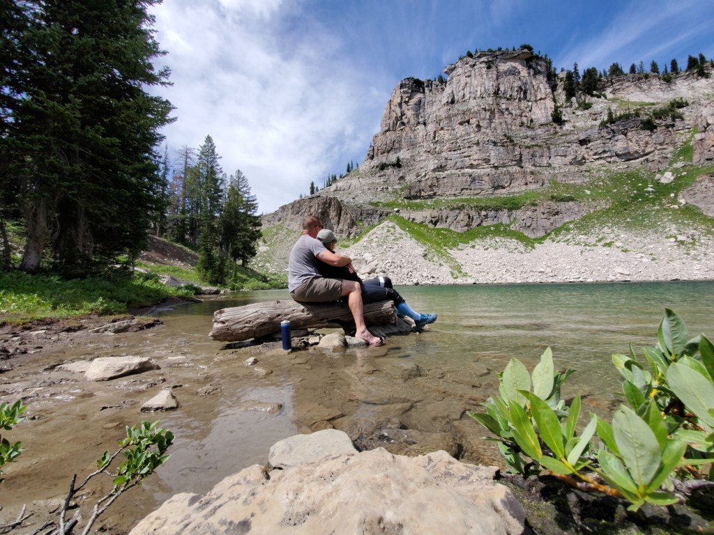 On the second day of our adventure, I had the rare luxury of sleeping in. When I finally emerged from my tent, the crisp mountain air greeted me, and I eagerly started the day with a steaming cup of coffee. The anticipation of the hike ahead filled me with excitement as Jackie, Bill and I prepared to leave the Granite Canyon campground and make our way to Devil’s Shelf campground along the Teton Crest Trail.