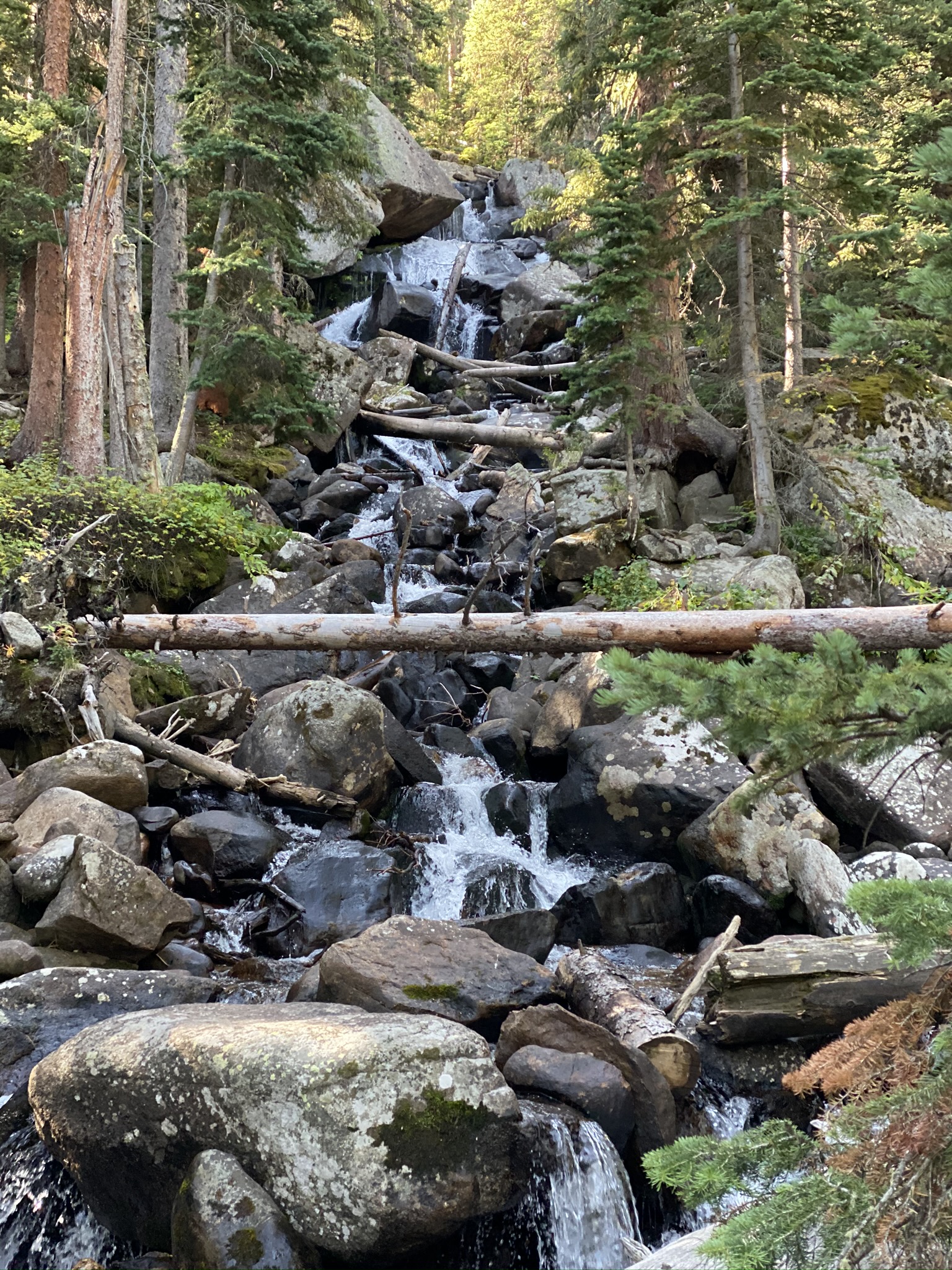 The trail to Bluebird Lake shares its route with several other iconic landmarks in Wild Basin. Starting at Copeland Falls, the path wove its way through stunning scenery, leading us to Calypso Cascades and the roaring waters of Ouzel Falls. Each stop offered a unique perspective on the park’s diverse ecosystem.