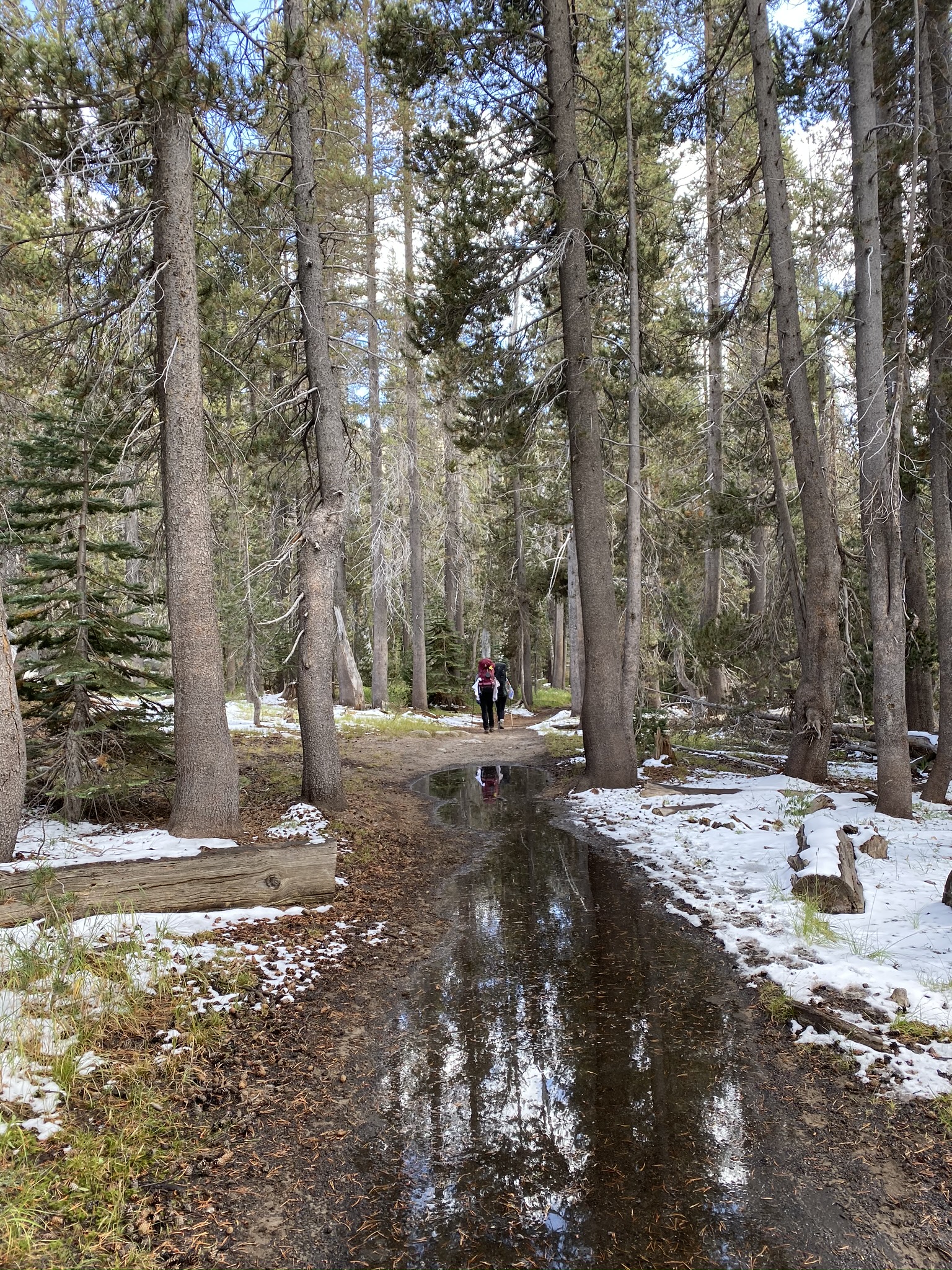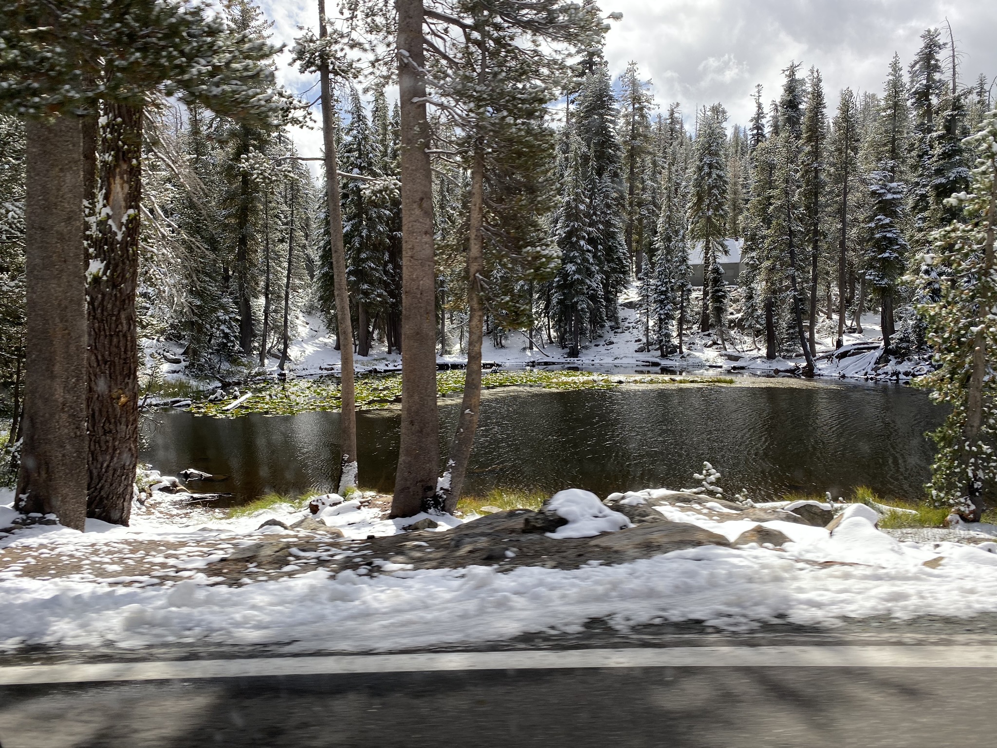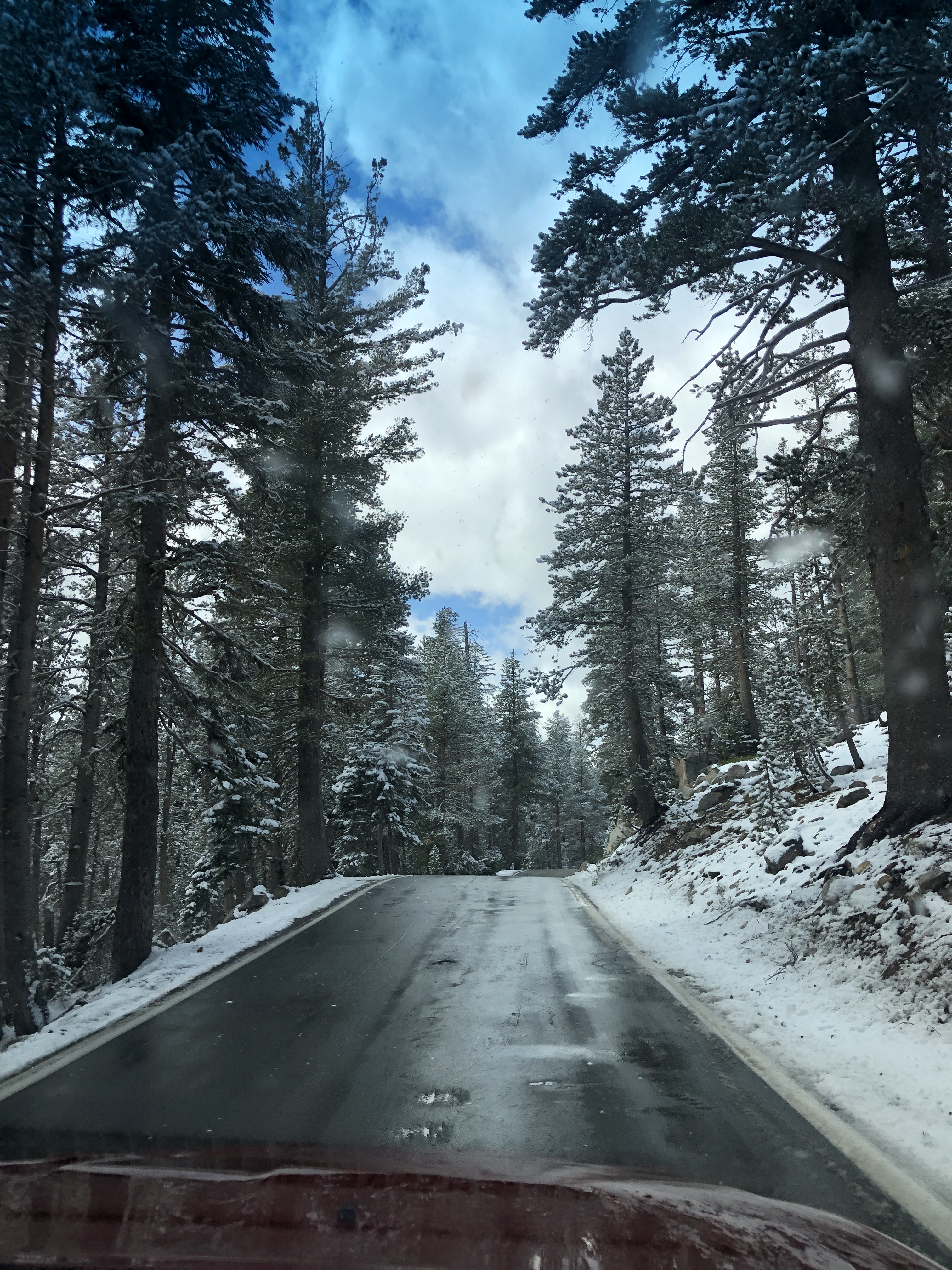Yosemite Valley was bustling with an event, causing traffic to come to a halt. We marveled at El Capitan and the famous cliffs and waterfalls, but couldn’t make it to the Backcountry Wilderness Center as planned. That evening, snow began to fall, making the roads icy and leading to the closure of Tioga Road. This detour forced us to take a 3-hour drive around the mountains, resulting in the cancellation of our permits for the entire trip.