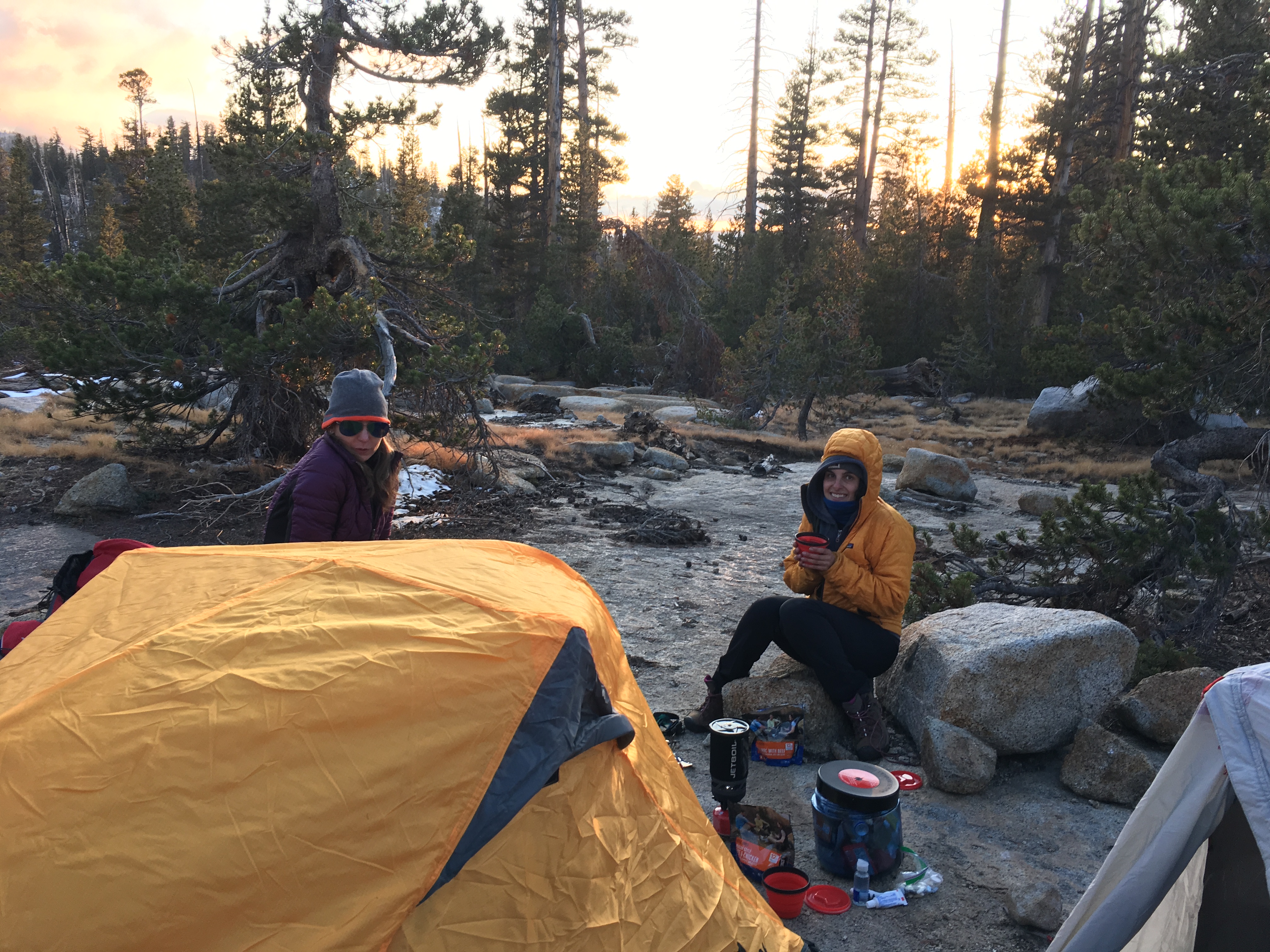 The night at Sunrise Lakes was cold, with temperatures dropping into the low 20s, making it the coldest backpacking trip I had experienced. Despite the chill, we enjoyed panoramic views of the Sierra Nevada and settled in for the night, curled up in our sleeping bags, anticipating the adventures to come.