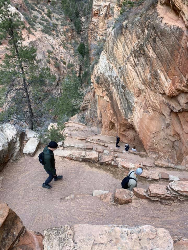 We started our journey at the Grotto Trailhead, the launching point for the legendary Angels Landing hike. While the hike is only 5 miles round trip, it’s incredibly strenuous, with a steep 1,500-foot elevation change that tests even seasoned hikers.