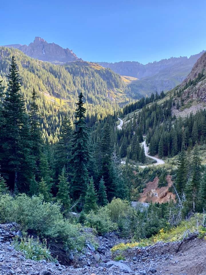 As we ascended deeper into the basin, the landscape unfolded like a tapestry of natural wonders, with Gilpin Peak and the popular Colorado 14er Mount Sneffels (14,150 ft) presiding over the rugged terrain. Passing by relics of the region’s mining past, such as the Atlas Mine and Stamp Mill, we were reminded of the rich history that permeates these mountainous landscapes.