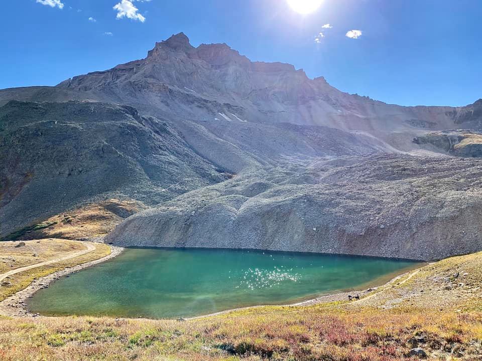 Our journey culminated at Upper Yankee Boy Basin, where the splendor of Wrights Lake greeted us, its crystalline waters reflecting the surrounding peaks in a mesmerizing display of alpine beauty. But our adventure didn’t end there; a trail beckoned us to Blue Lakes Pass, promising panoramic views and rugged terrain to conquer.