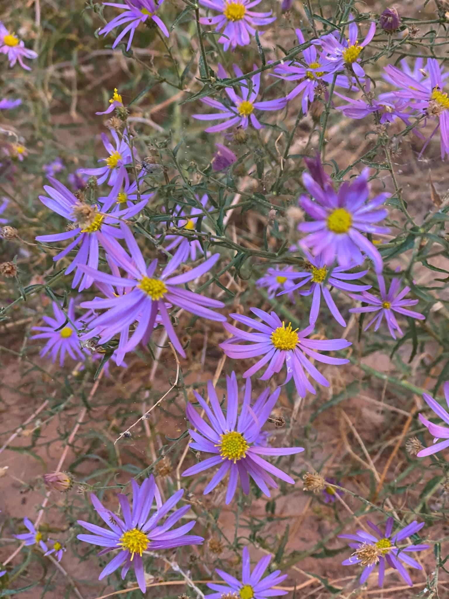 Leaving behind the narrow confines of Buckskin Gulch, we ventured into the expansive landscape of Paria Canyon. The Paria River, though running low, provided a refreshing respite as we waded through its gentle currents. Along the riverbanks, we were greeted by vibrant purple flowers, adding a splash of color to the rugged terrain.