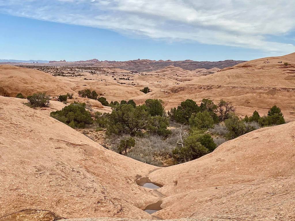 As we ascended to the mesa’s summit, a breathtaking panorama unfolded before our eyes. The majestic Colorado River meandered through the landscape, framed by the towering cliffs of Arches National Park in the distance. It was a moment of awe-inspiring beauty, reminding us of the unparalleled wonders that await in Utah’s desert wilderness.