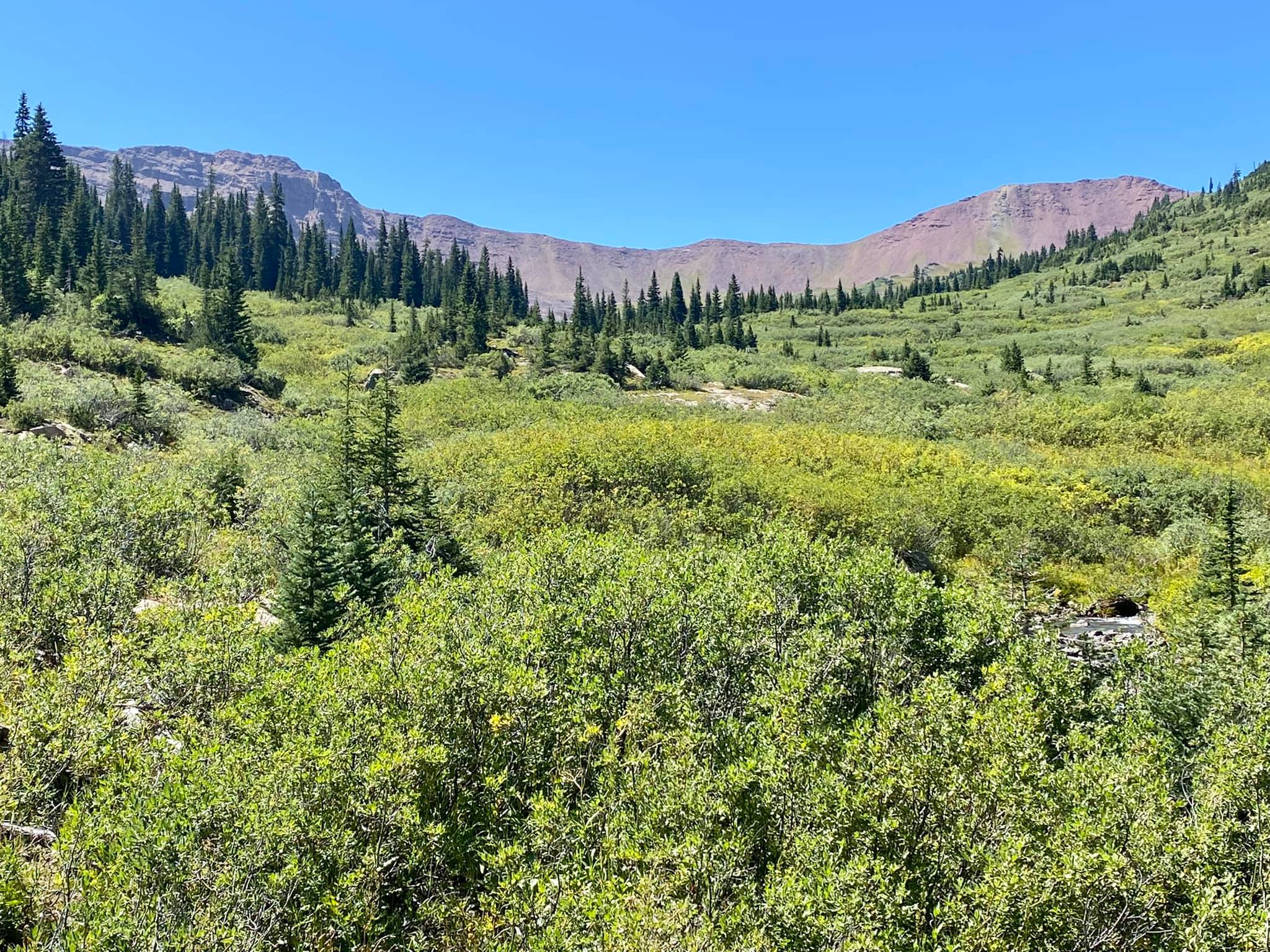 The trail unfurled before us, revealing vistas of the valley below as we ascended towards West Maroon Pass. Each step brought us closer to our goal, navigating a narrow corridor flanked by rushing creeks and rugged talus fields. Meadows, willow thickets, and towering trees framed our path, offering glimpses of the breathtaking scenery that awaited us.