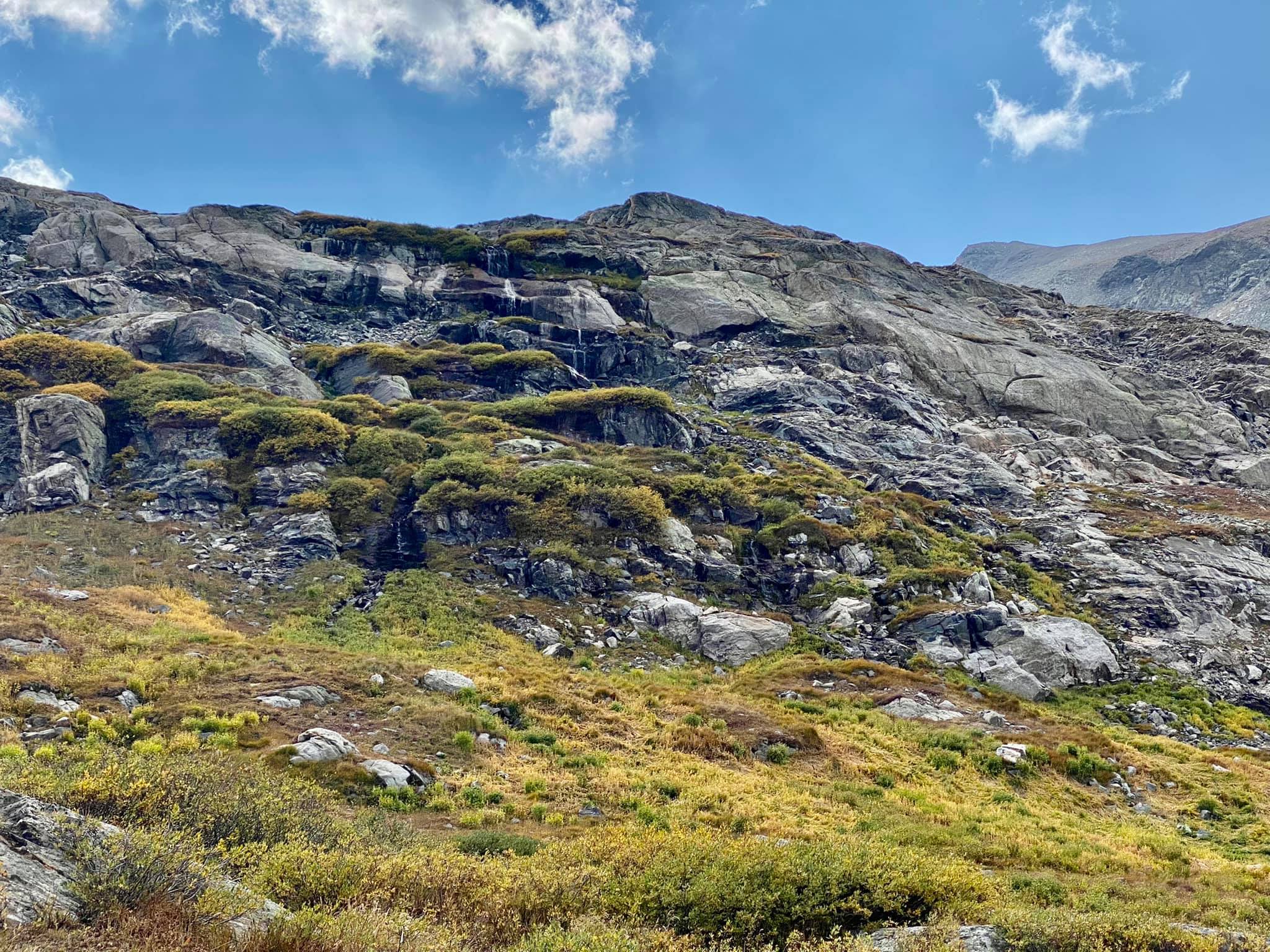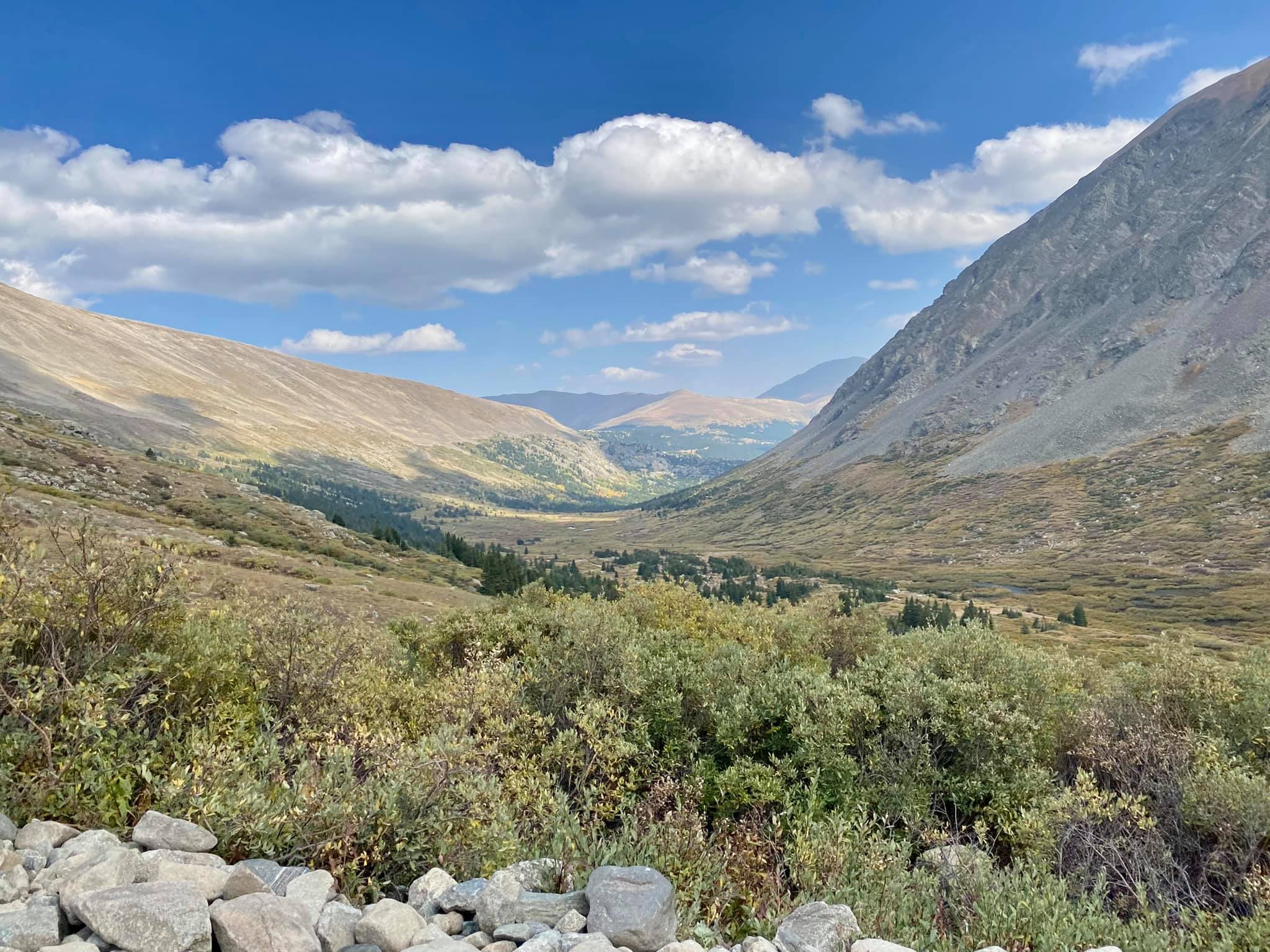 As we ascended higher along the trail, the dense forest gradually gave way to sweeping vistas as we reached above the treeline. From this vantage point, we gazed down upon Platte Gulch, captivated by the rugged beauty of the landscape unfolding before us.