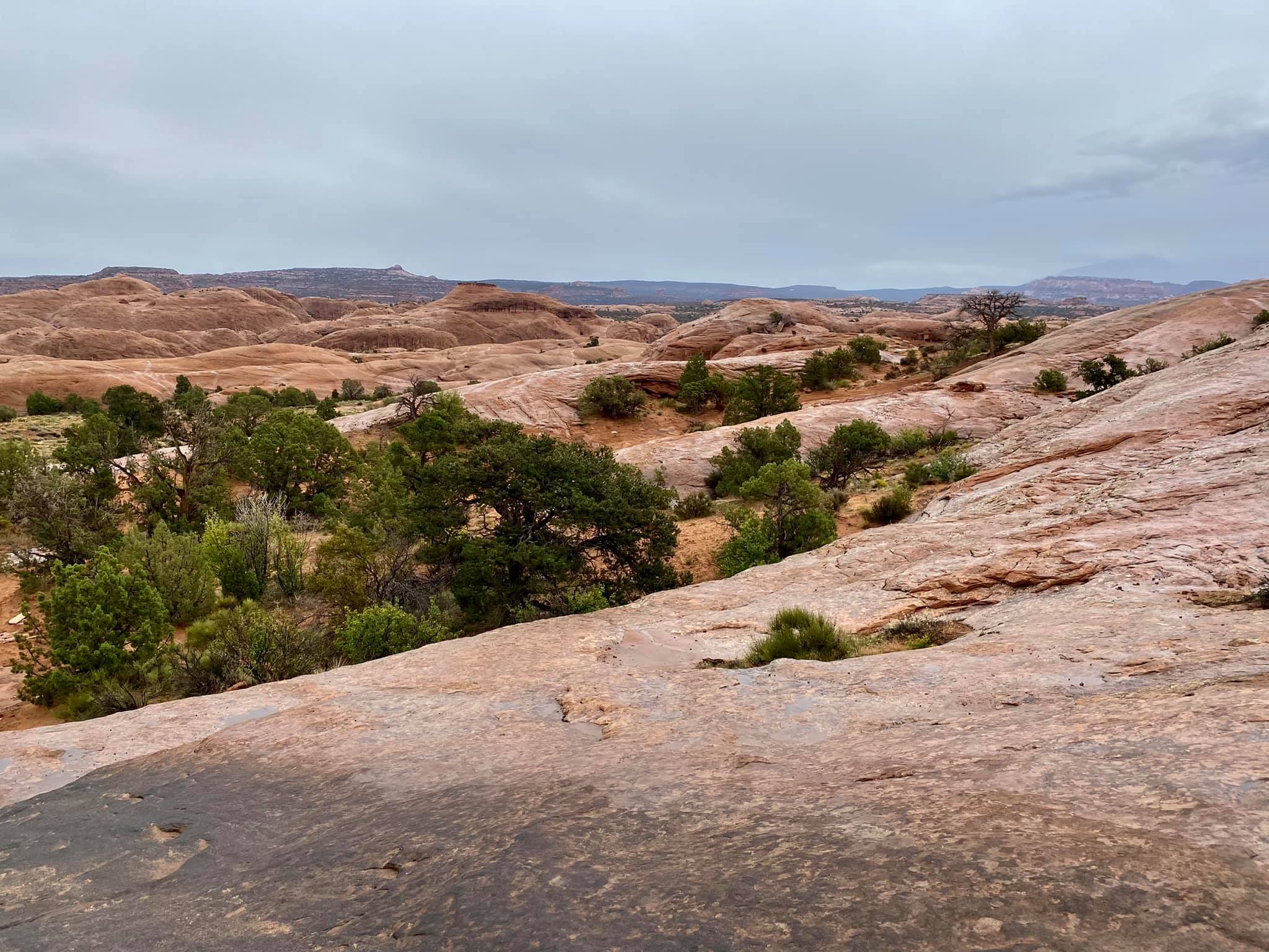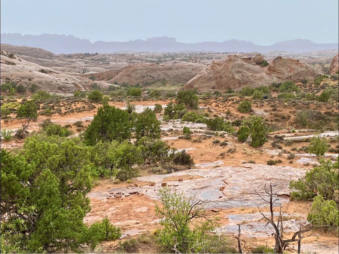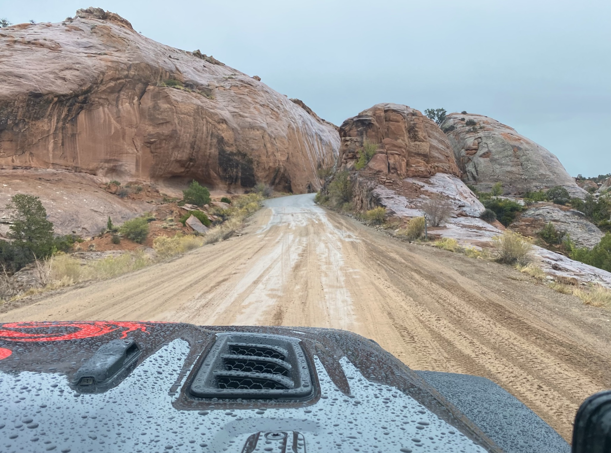 Despite the less-than-ideal weather conditions, the scenic beauty of Moab’s red rock country remained as captivating as ever. Towering fins and mesas stretched towards the sky, their rugged contours softened by the gentle veil of rain. As we navigated the undulating terrain, each turn revealed a new vista, each vista more breathtaking than the last. Though the weather may have obscured the sun, it could not diminish the awe-inspiring allure of Moab’s natural wonders.