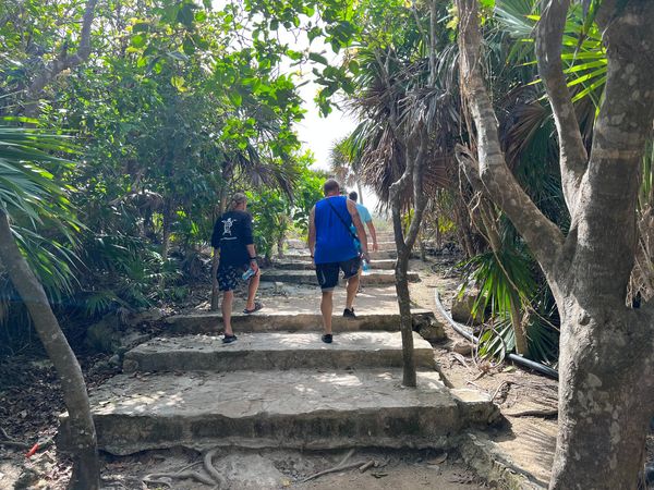 Our adventure began with a visit to the iconic Mayan city of Tulum, where ancient ruins perched atop sheer limestone cliffs overlooked the Caribbean turquoise waters. Walking through the ancient city, we marveled at the black and grey stone outcroppings, once majestic buildings that now dotted the sun-baked landscape. The stunning views and rich history of Tulum left us in awe of the Mayan civilization.