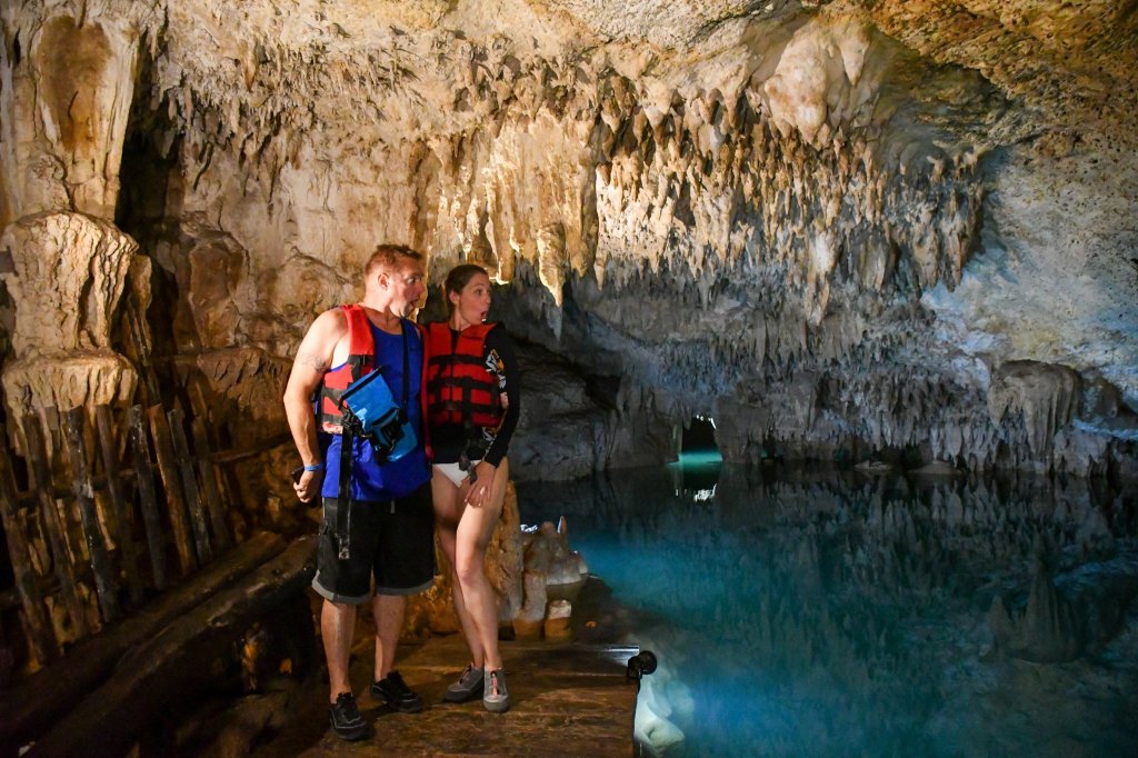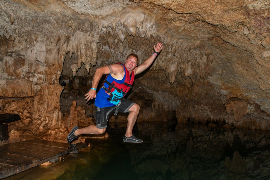 One of the most unforgettable experiences of our trip was visiting the Xtun Cenote cave. Descending into the depths of the cave, we were mesmerized by the fresh crystalline water and intricate rock formations. The highlight of our cenote adventure was jumping from a natural platform into the darkness below. Suspended in the air, we held hands and braced ourselves for the exhilarating plunge into the cold water below. It was a surreal and unforgettable moment that left us feeling exhilarated and alive.