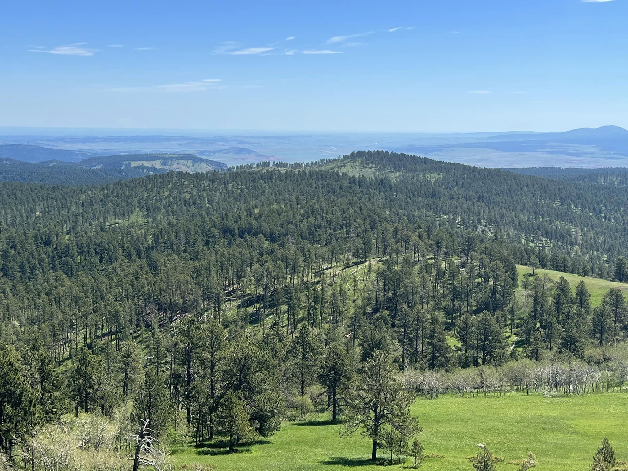 Ascending to the pinnacle of Warren Peak Lookout Tower, we were greeted by panoramic vistas that stretched as far as the eye could see. In the distance, the iconic silhouette of Devil’s Tower rose majestically against the horizon, adding to the allure of the landscape. From this vantage point, we could glimpse the vast expanse of Montana and South Dakota, a testament to the awe-inspiring beauty of the region.