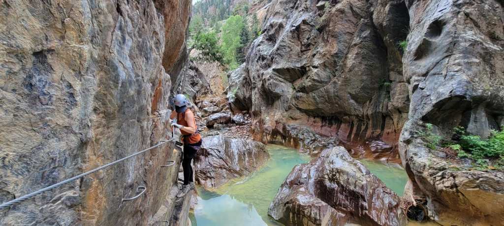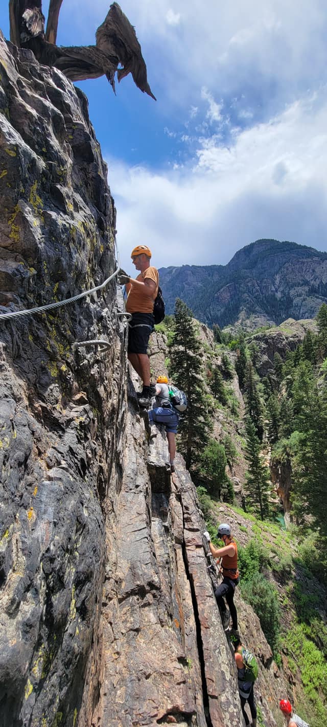 In celebration of Bill’s milestone 50th birthday, we embarked on a thrilling adventure with our friends to tackle the Ouray Via Ferrata’s downstream route. Rated at 4B, this exhilarating journey promised breathtaking views and heart-pounding challenges as we traversed the rugged terrain of the Uncompahgre River canyon. Join us as we recount our unforgettable experience conquering the Via Ferrata and creating cherished memories along the way.
