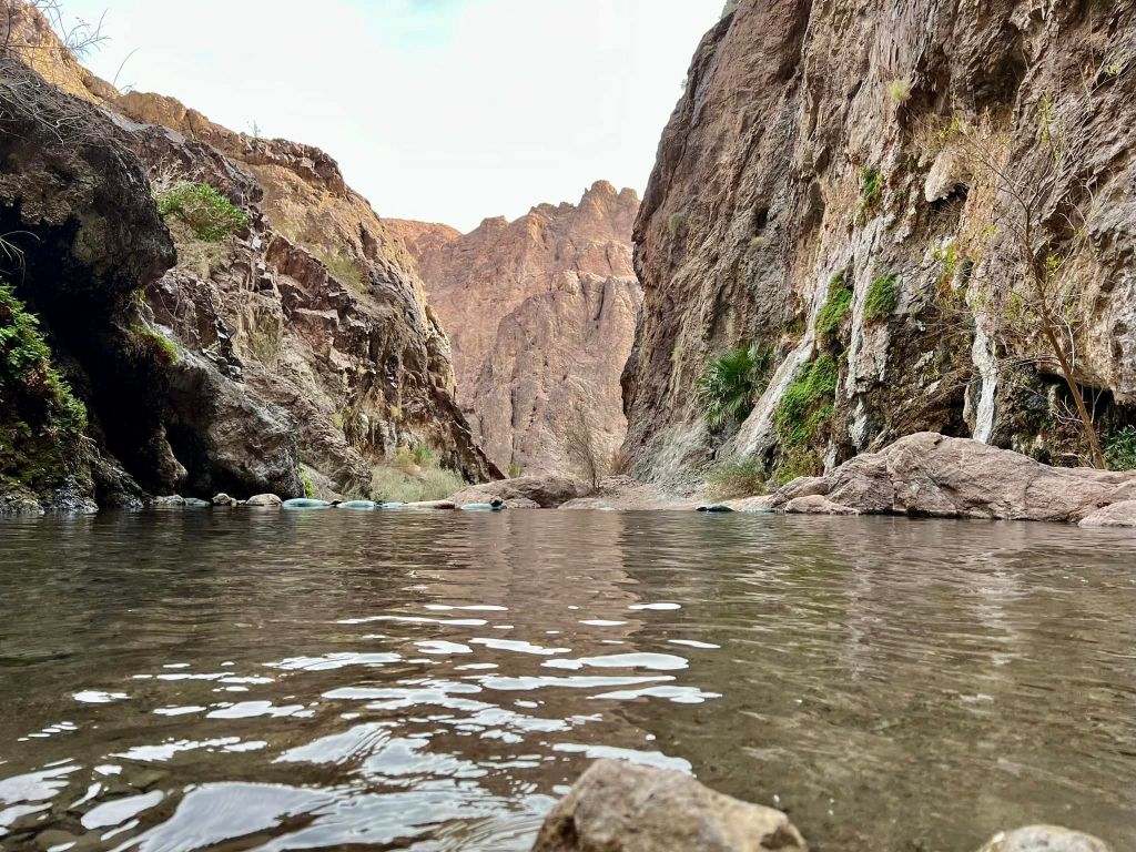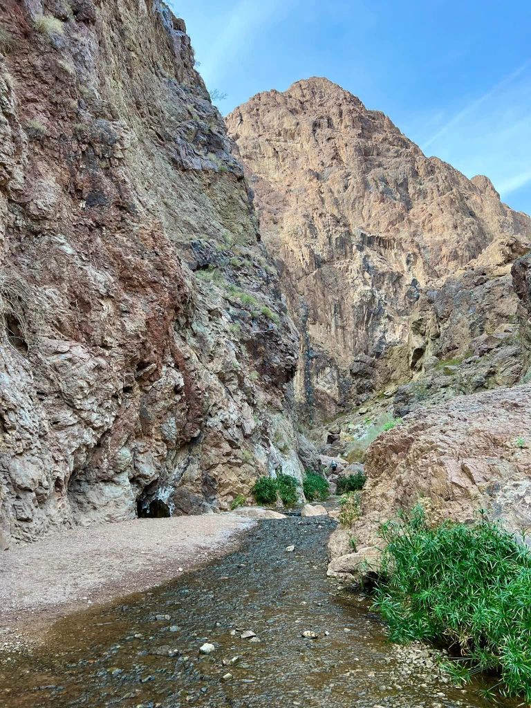 As we paddled downstream towards Willow Beach, we marveled at the towering Mexican Fan Palms adorning the river’s edge, casting dappled shadows on the azure waters. As Bill and I made our way down the river, we set out to explore Boy Scout Canyon, where the gentle warmth of the water enveloped us like a comforting embrace. Each step brought us closer to nature, each moment a testament to the enduring beauty of the desert landscape.