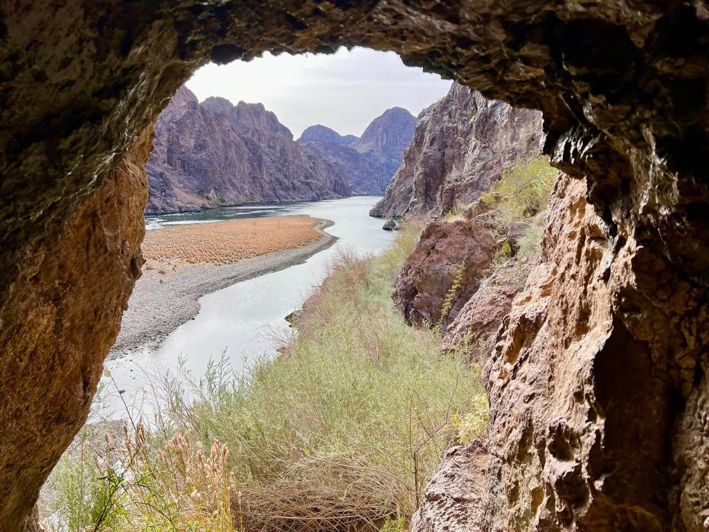 Setting off from Hoover Dam, our kayaks glided gracefully along the tranquil waters of the Colorado River, tracing the path through Black Canyon once more. Memories of our previous journey flooded back as we retraced our steps, this time determined to fully immerse ourselves in the experience. Passing by the iconic sauna cave and navigating the hot springs canyons, we reveled in the soothing warmth of the natural thermal waters, feeling rejuvenated and alive.