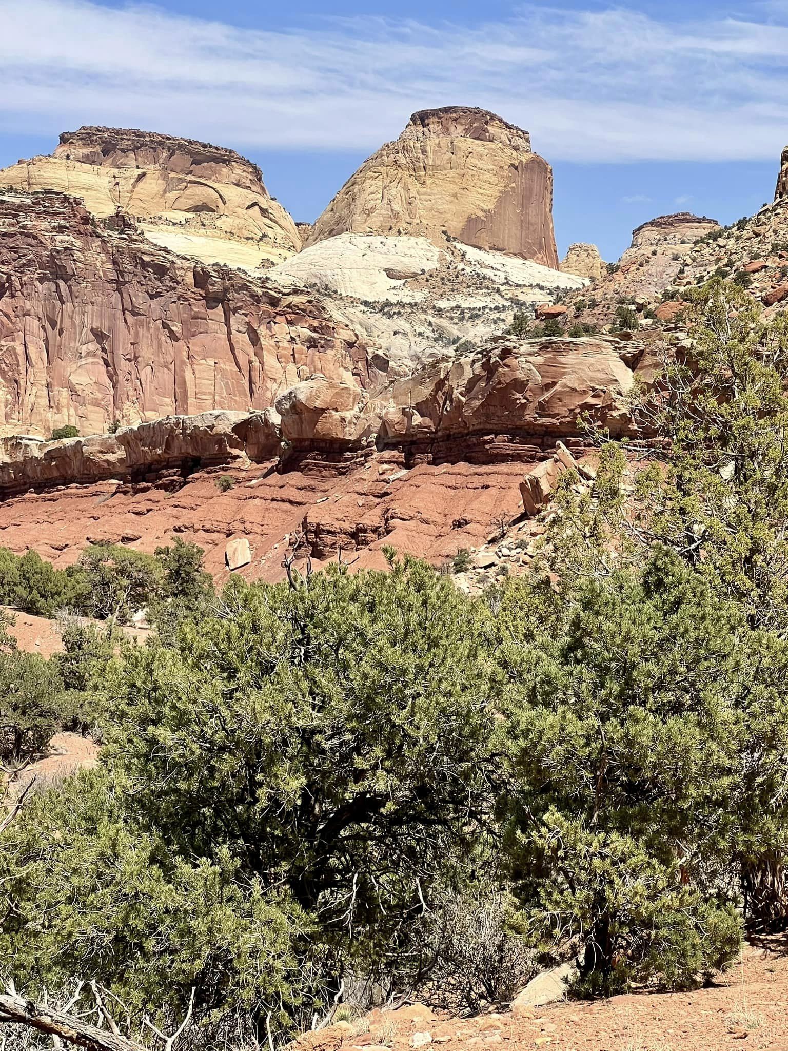 Our first stop along the way was Capitol Reef Scenic Drive, a winding road that meanders through the heart of the national park. As we traversed this scenic route, we were treated to breathtaking vistas of towering cliffs, vibrant rock formations, and layers of geological wonders. Each turn revealed a new marvel, from colorful rock bands to rugged canyons carved by the forces of nature.