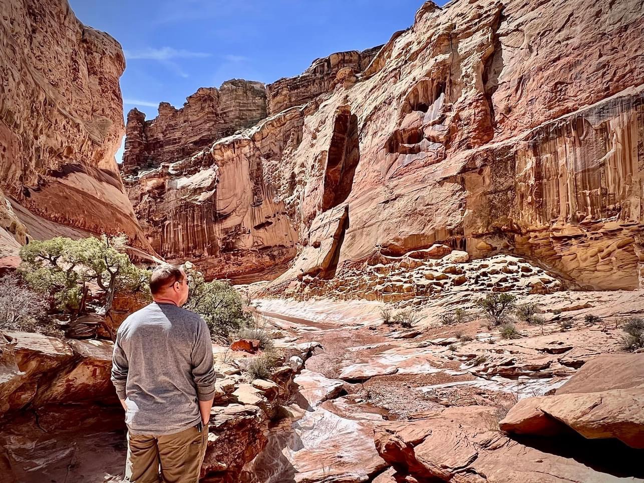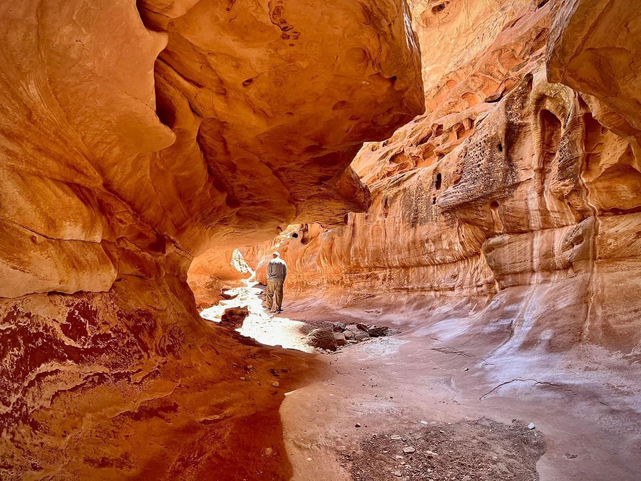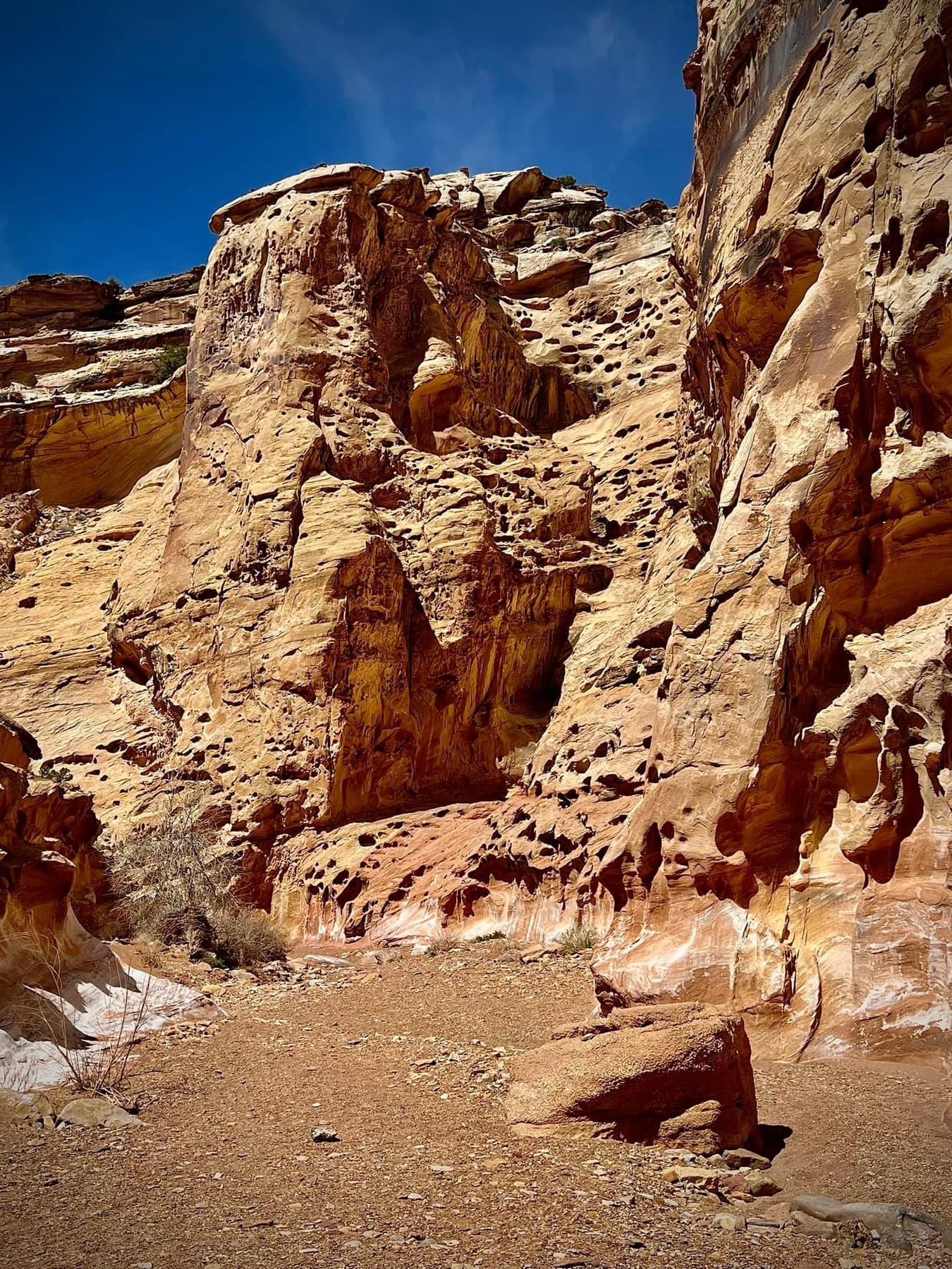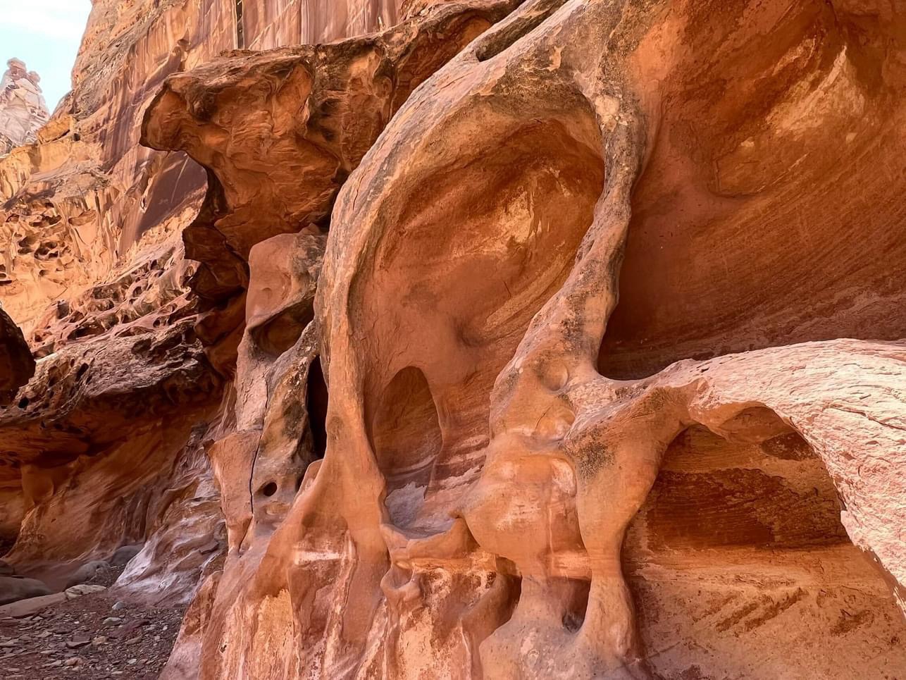 Stopping briefly at Crack Canyon, we were treated to a glimpse of the Swell’s geological wonders. Despite feeling under the weather, I was captivated by the beauty of the canyon, with its intricate tafoni formations and towering rock walls. Though our visit was short, it left a lasting impression, igniting a desire to return and explore further.