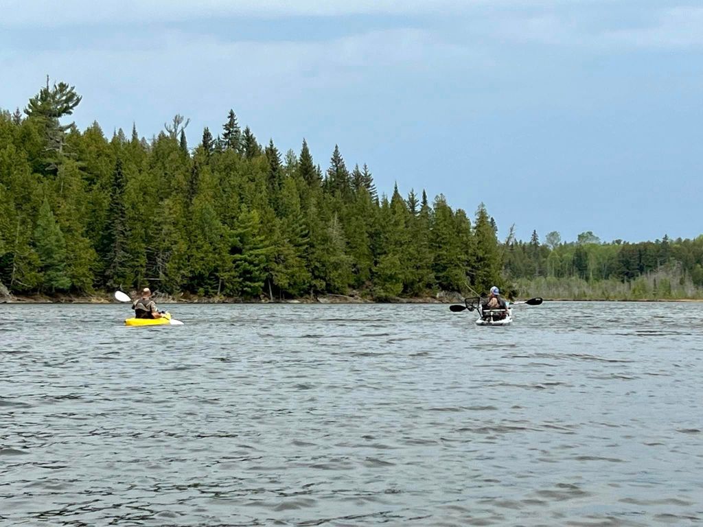 Amidst serene waters and tranquil forests, we delved into a day of fishing and exploration. Bald eagles graced our presence as we cast our lines into the shimmering lake, enjoying the thrill of reeling in one catch after another. With bellies full from a shore lunch of freshly caught fish, we ventured into the wilderness, encountering wildlife and breathtaking vistas that painted the perfect backdrop to our island retreat.