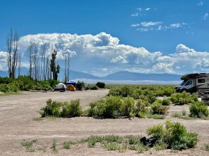 Our furry companions eagerly explored their new surroundings, their tails wagging with excitement as they discovered new sights and smells. Meanwhile, Bill, Greg, and I indulged in the soothing warmth of natural hot springs at Sand Dune Recreation, a rejuvenating experience that left us feeling refreshed and revitalized.