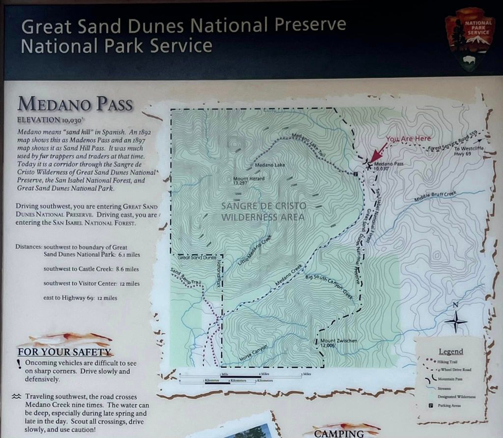 Returning to Sand Dunes National Park, we decided to spice things up by venturing into the rugged wilderness of the Sangre de Cristo Mountains. With two exhilarating four-wheel-drive roads, Medano Pass and Hayden Pass, awaiting our exploration, it promised to be a day filled with adrenaline and raw mountain beauty.