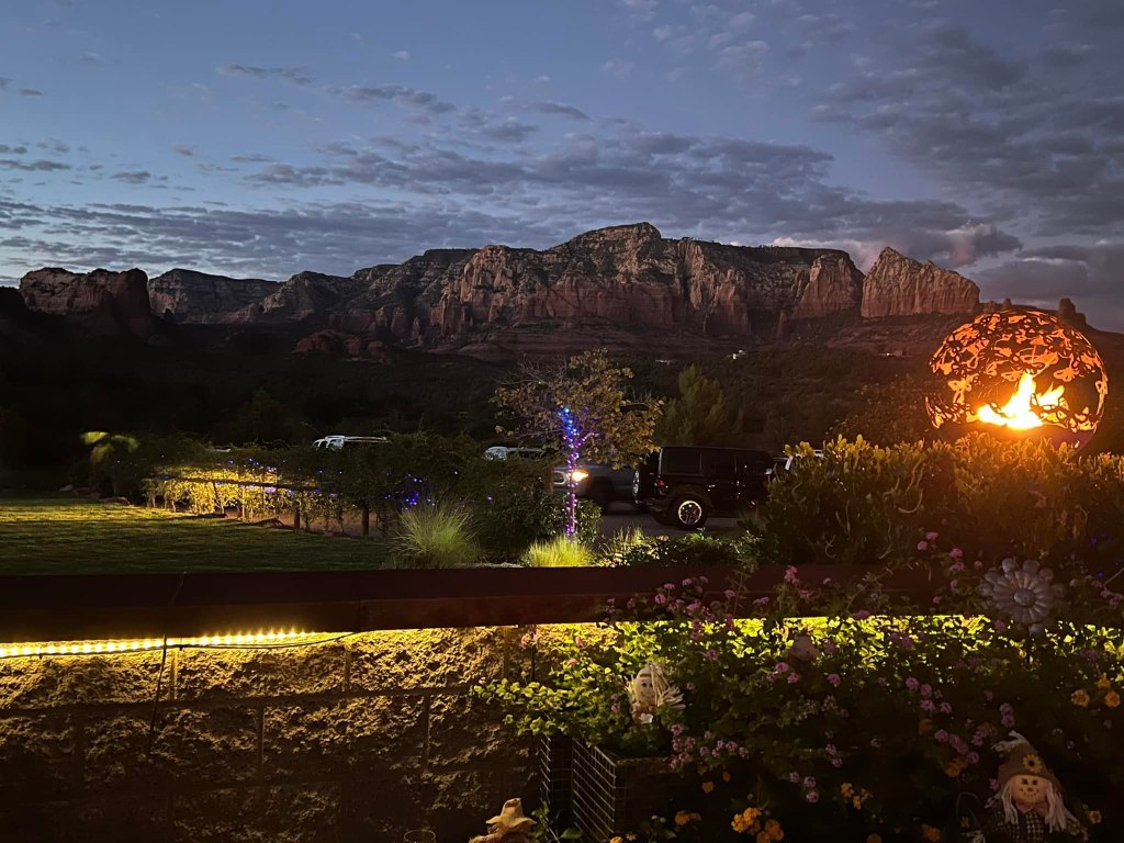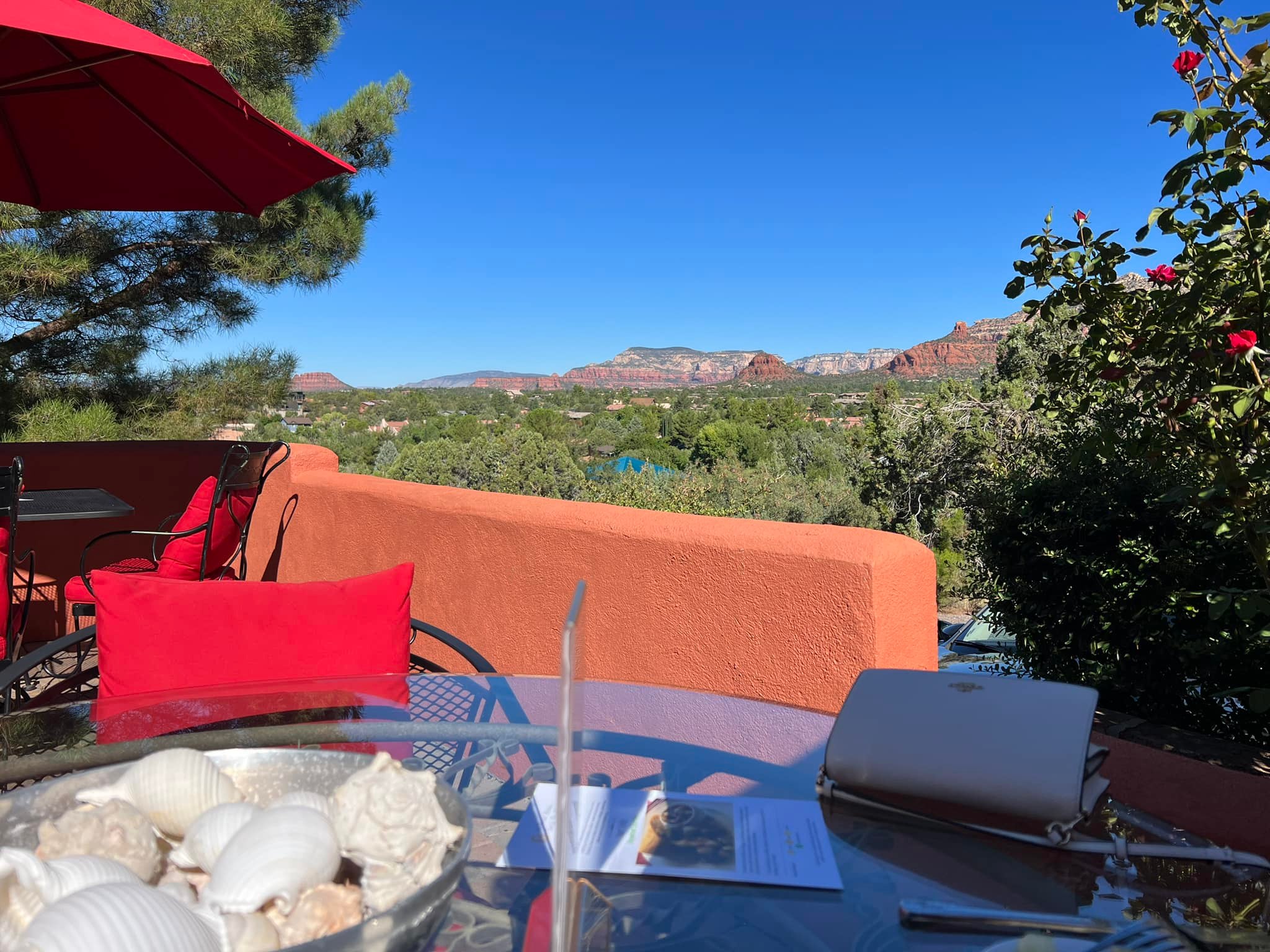 As the light shifted, the cliffs below us ignited with color. Reds deepened. Shadows stretched. Sedona glowed quietly beneath the fading sky.