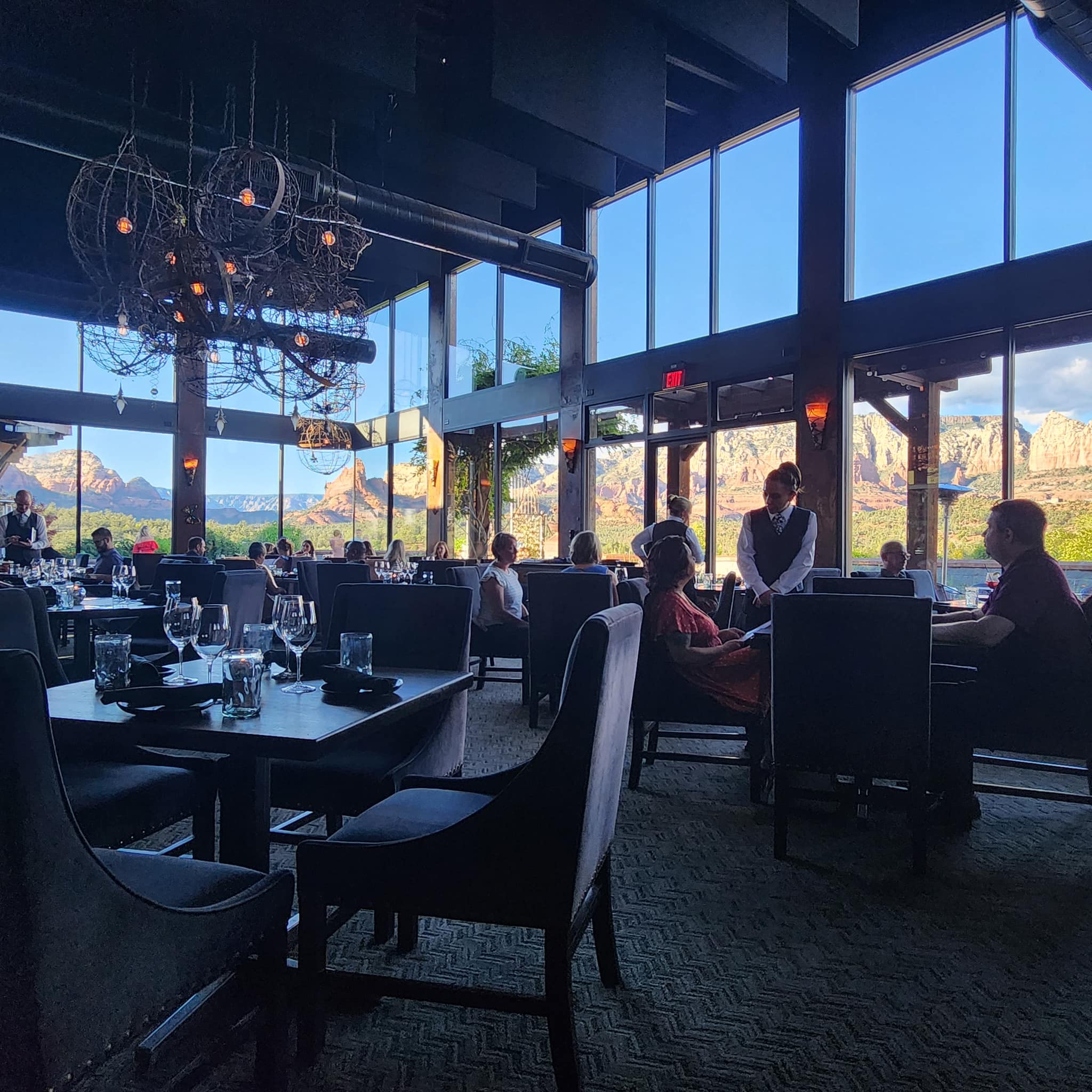On our final evening, we dressed up and headed to Mariposa, a Latin-inspired grill perched high above the red rock canyons. We timed it perfectly—arriving just as the sun dipped low.