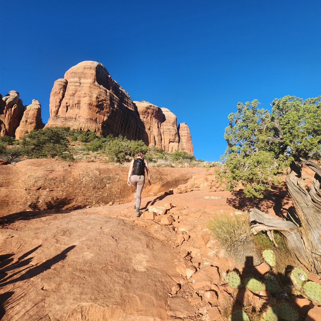 Rising sharply above Sedona, its sculpted red sandstone spires look dramatic from below, but the climb itself is more approachable than it appears. On our final full day in Sedona, Irene and I set out early, excited for a hands-on hike that promised big views, a bit of scrambling, and a fitting sendoff to the trip.