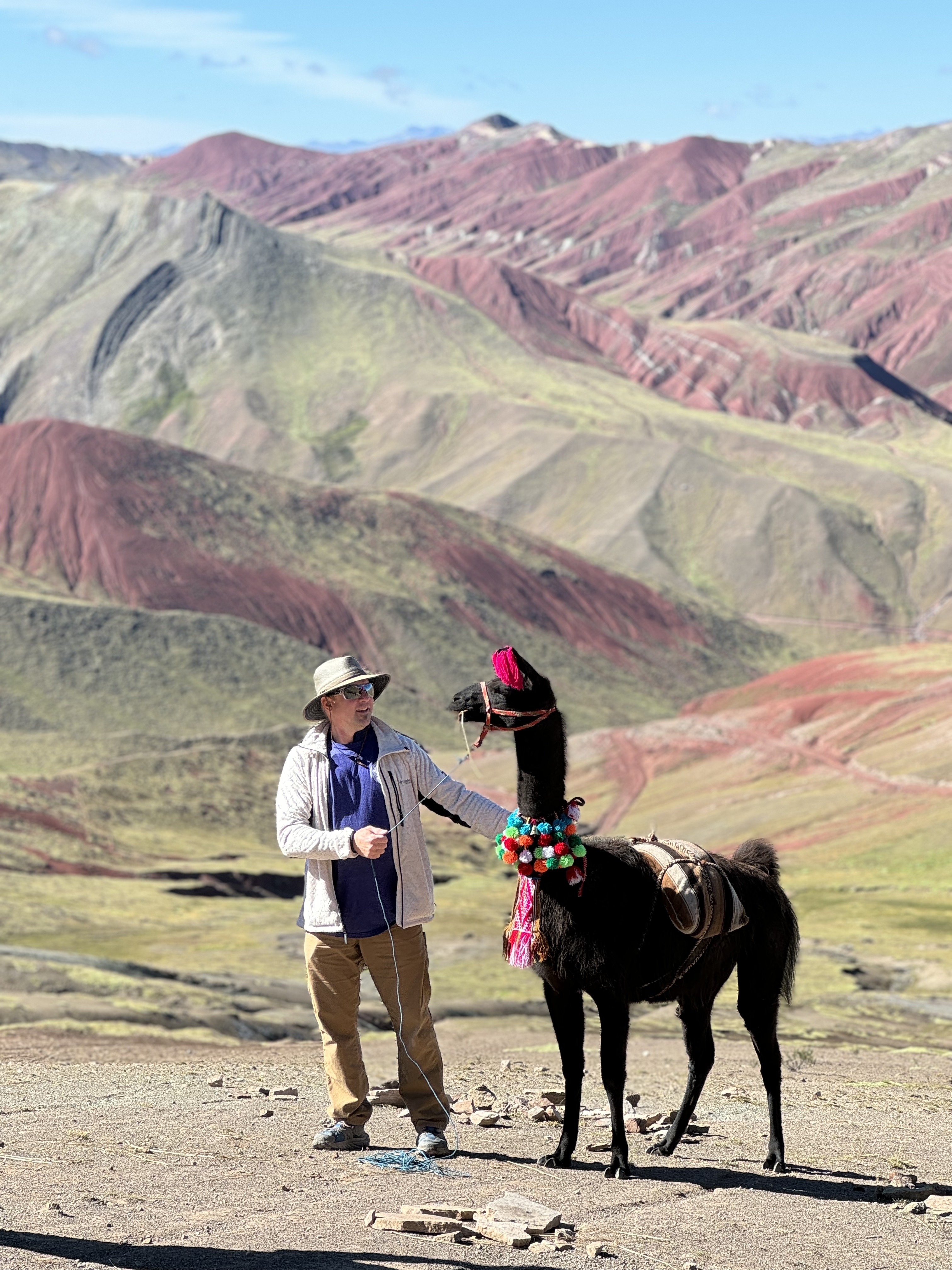 On our 9th day in Cusco, Bill, Greg, and I decided to visit one of Peru’s famous rainbow mountains. While Vinicunca Rainbow Mountain is popular on social media, we opted for Palccoyo Rainbow Mountain after some research. Palccoyo boasts three distinct rainbow mountains compared to Vinicunca’s single peak, offering a more diverse and less crowded experience.