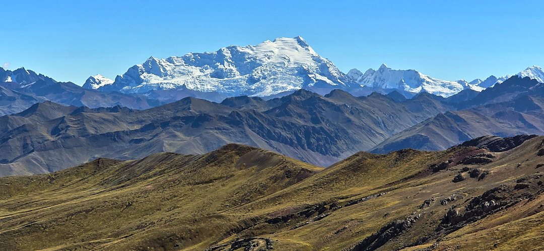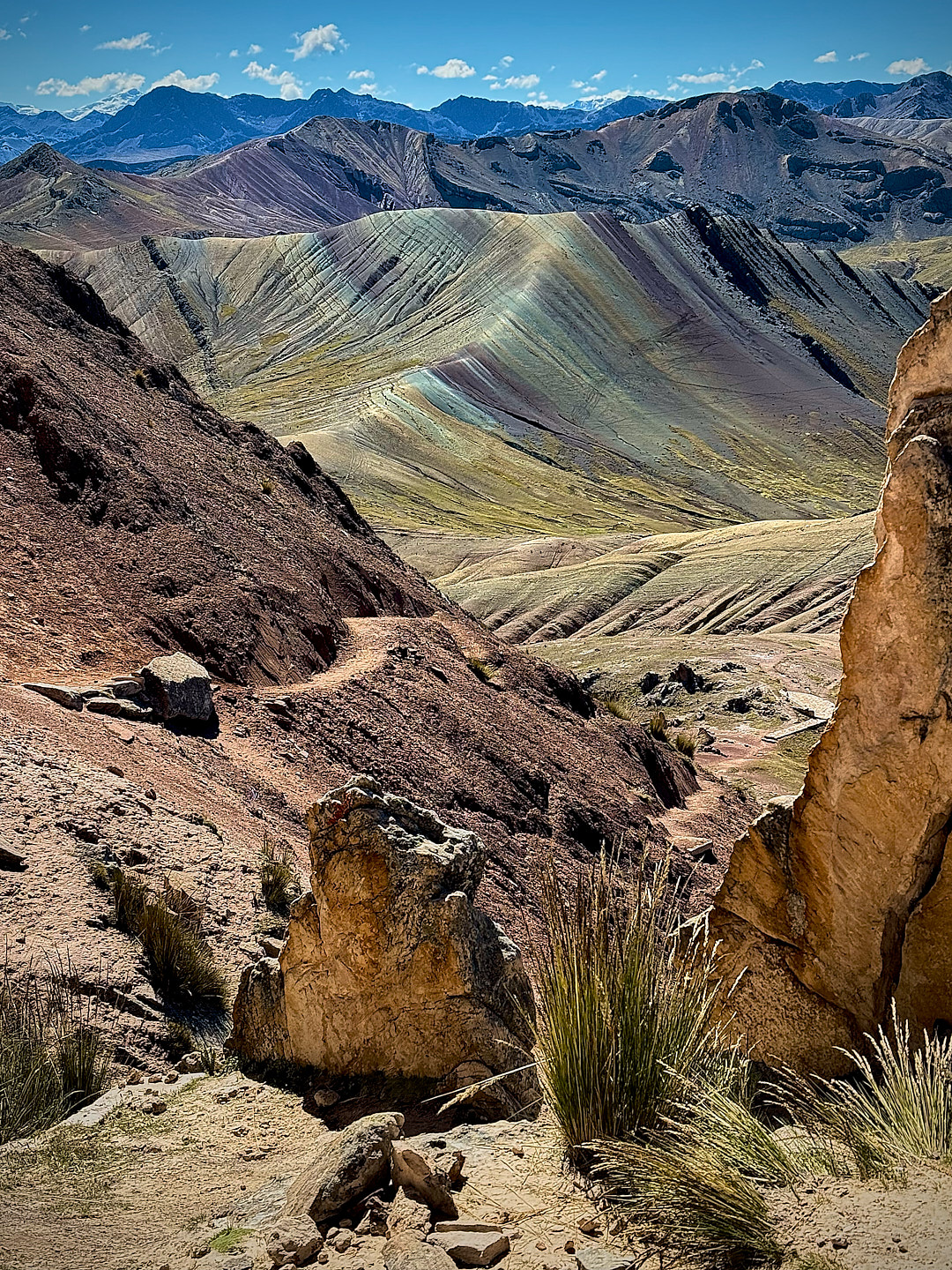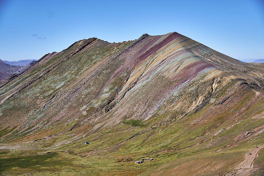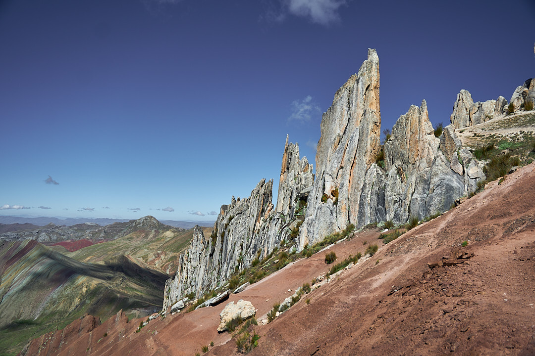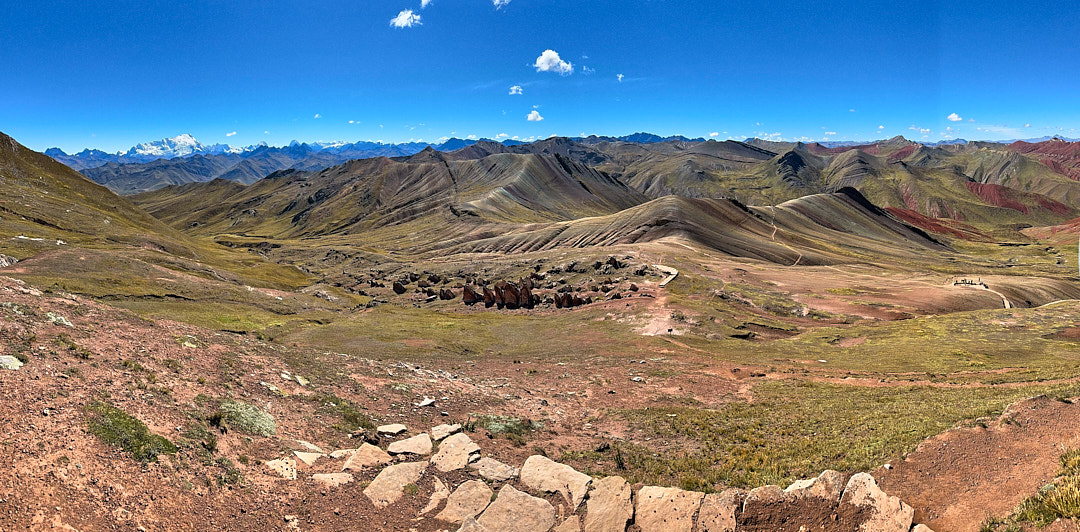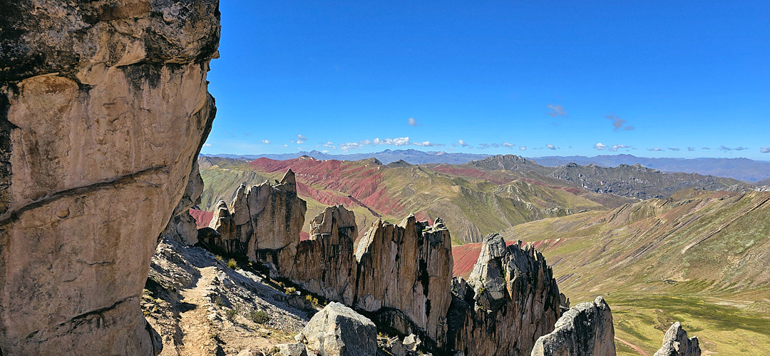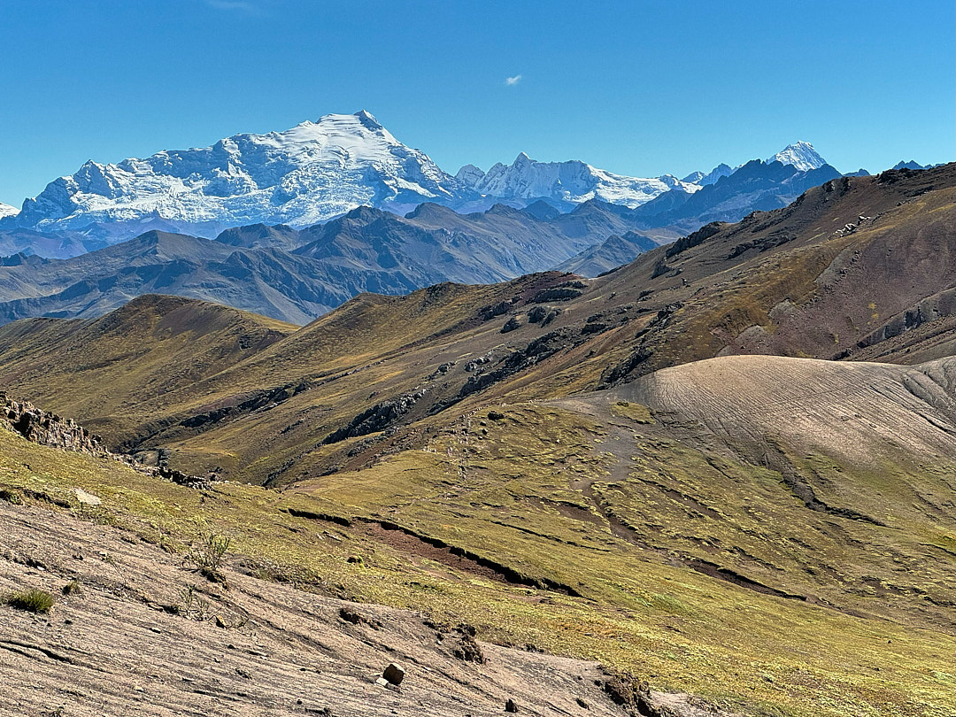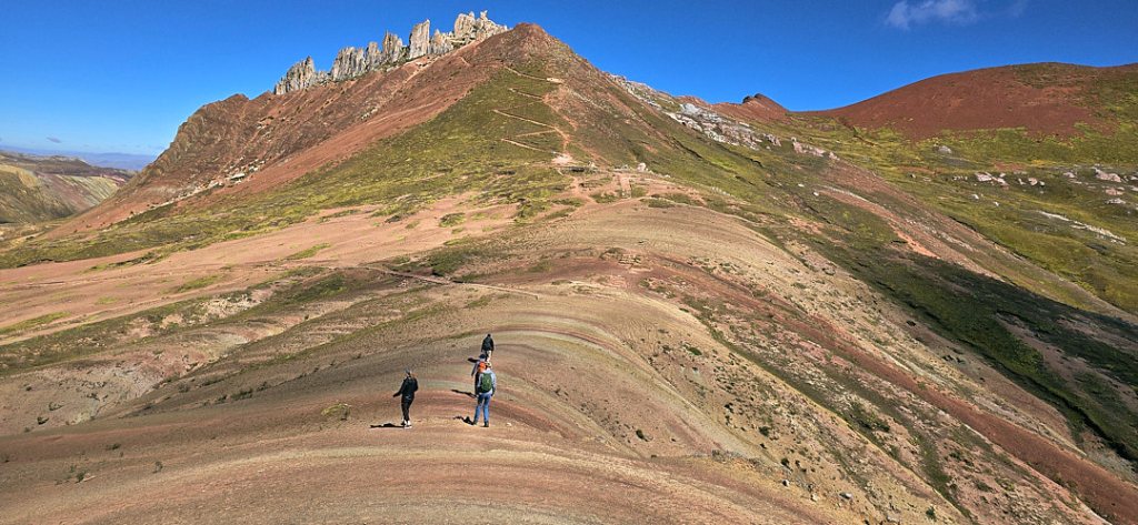At the trailhead, the starting elevation of 15,700 ft. immediately made its presence known. The high altitude was a challenge, but the perfect weather illuminated the colors of the mountains beautifully. As we started our hike, it wasn’t long before we encountered our first rainbow mountain. The landscape felt more like a rainbow valley than a single mountain, with incredible views of the Red Valley and layered mountains beyond.