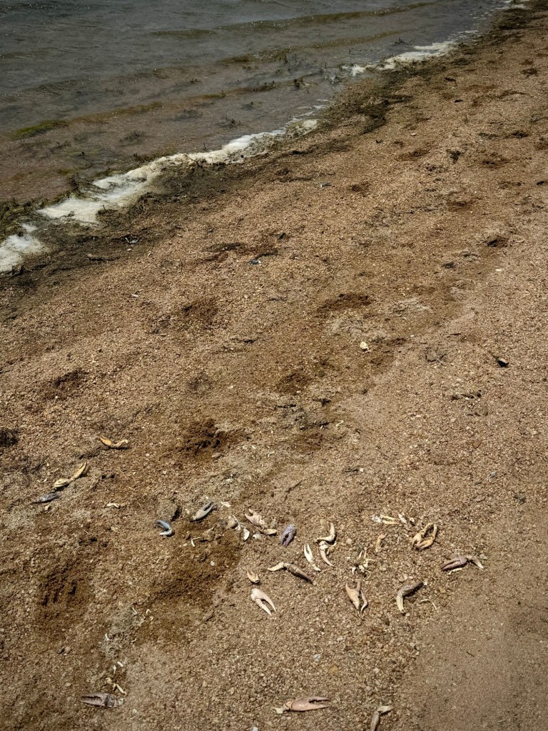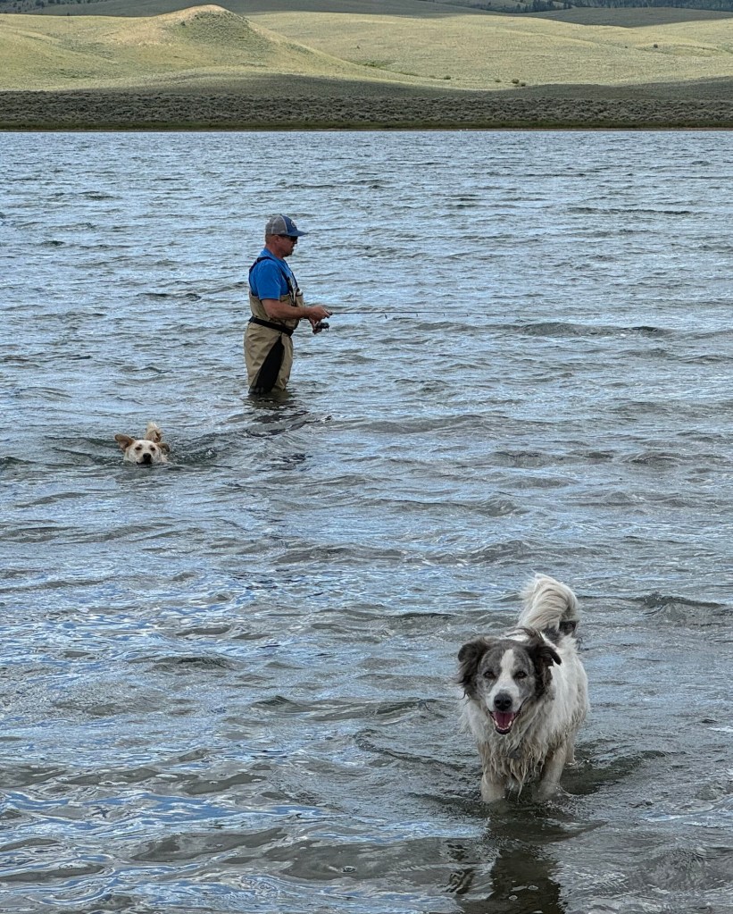 After a pancake breakfast, we headed to the lakes in Hohnholz State Wildlife Area. On our drive, we spotted deer and antelope. At the lakes, a pelican and seagulls greeted us. The shore was littered with crawfish claws, a curious sight I had never seen before. The dogs had a blast running and playing in the water, with Dasher swimming around Bill as he fished. As the winds picked up, we headed back to the Jeep for our next adventure.